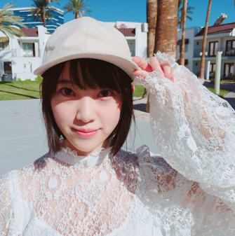 元気いっぱいの堀未央奈さんは明るいカラーの服もよく似合います。プールやお風呂から上がってくつろいでいるところでしょうか♡