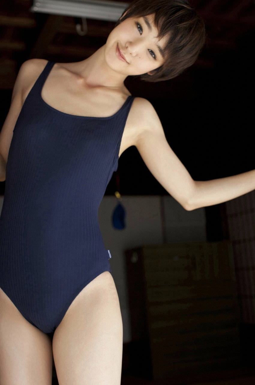 スクール水着のような水着はBカップのスレンダーボディにすごく似合っていますね♪あどけない顔が可愛いです。