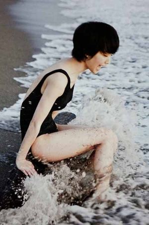 横から見てもこのスタイルの良さ!無駄がいっさいない美ボディは多くの女性の憧れです。清楚な水着姿がキレイです。