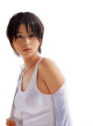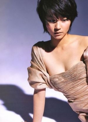めずらしいパンツスーツ姿の堀北真希さんです。丸くて形の良い胸がとても可愛いですね!