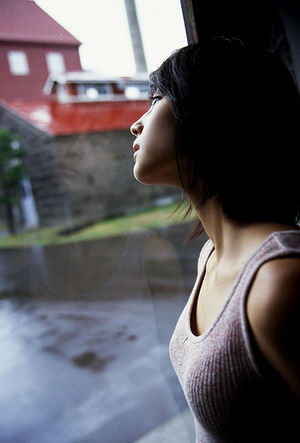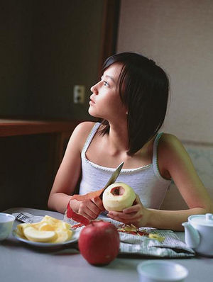 オフの日のショットのようにリラックスモードのシンプルキャミソール姿。薄い肩が華奢で可愛いです。