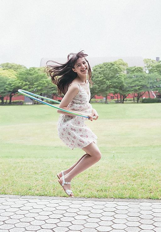 ワンピース姿で体全身を使って無邪気に遊んでいる中条あやみさん。動くたびに胸元がのぞけそうでドキドキしてしまいます。