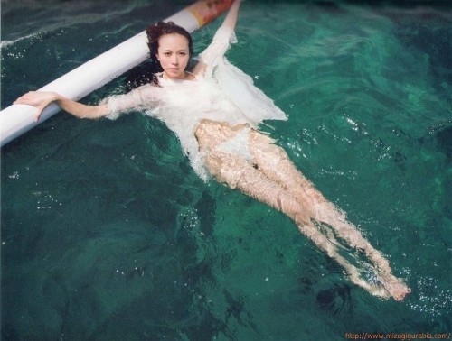 花柄のブラウスが水に濡れてセクシーなグラビアです。比嘉愛未さんにこういう風に見つめられて落ちない男性はいないのではないでしょうか。絶世の美女と言えますよね。