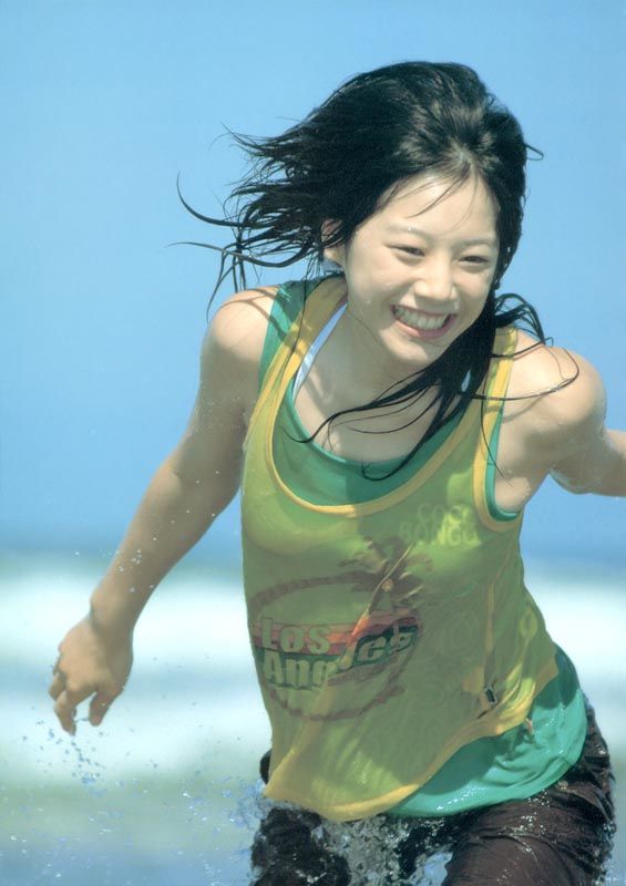 海で無邪気に遊ぶ夏帆さん。あどけない雰囲気と濡れたタンクトップがセクシーですね♡