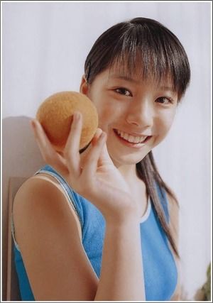 サラサラな黒髪ヘアーが風になびいて、清純派らしくとても爽やかですね。下からアングルが胸の大きさを強調しています。