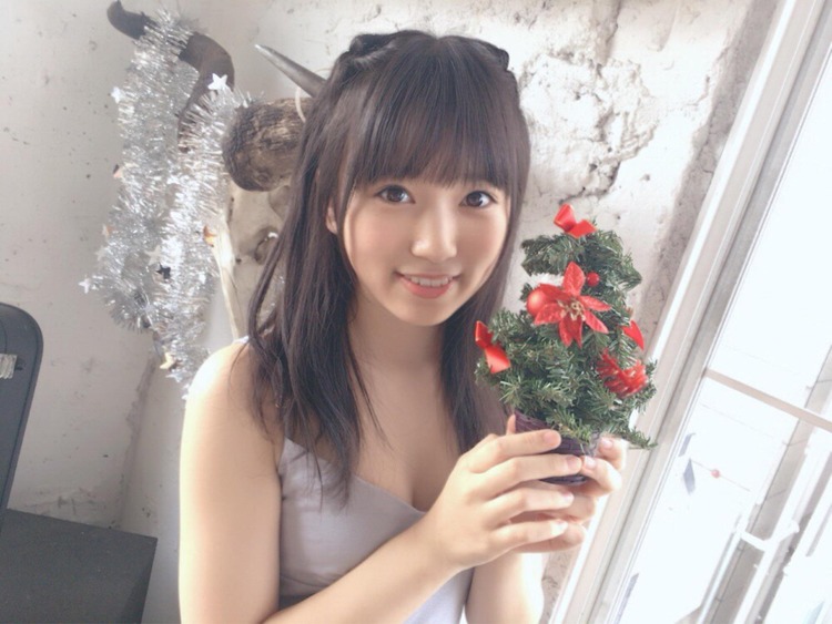 クリスマスのお花を手に持ってパシャリ♪美少女としかいいようのない顔立ちに、うっすら見える胸の谷間…、完璧な1枚に仕上がっています。