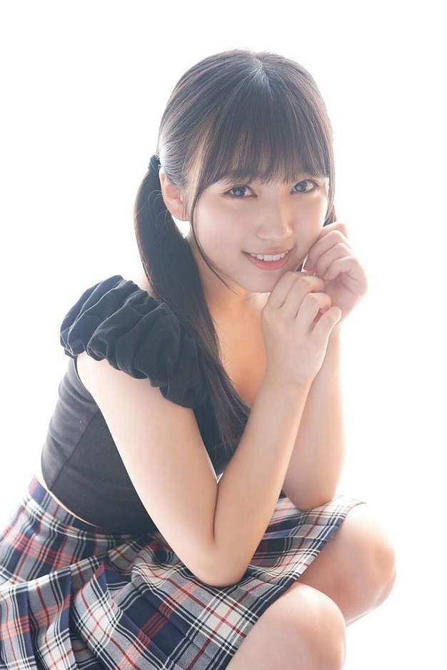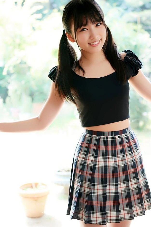 胸の形、位置、大きさが分かりやすい角度での1枚。まだ成長途中の頃の画像なので、あまりパツンパツンにはなっていませんが、体の細さに比べたら大きい方です。