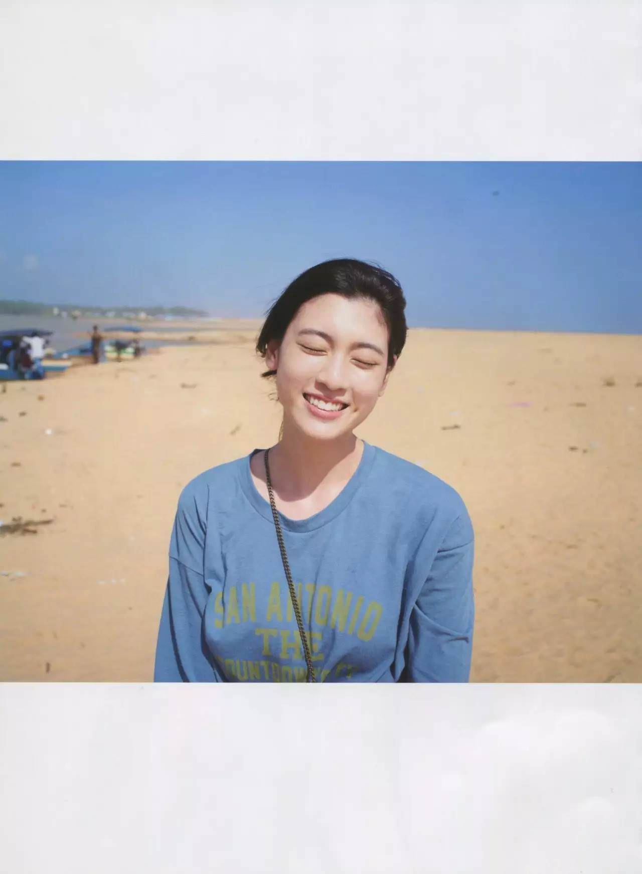 三吉彩花さんの元気いっぱいのグラビアです。美しい海と青空が三吉彩花さんの美しさを引き立ています。