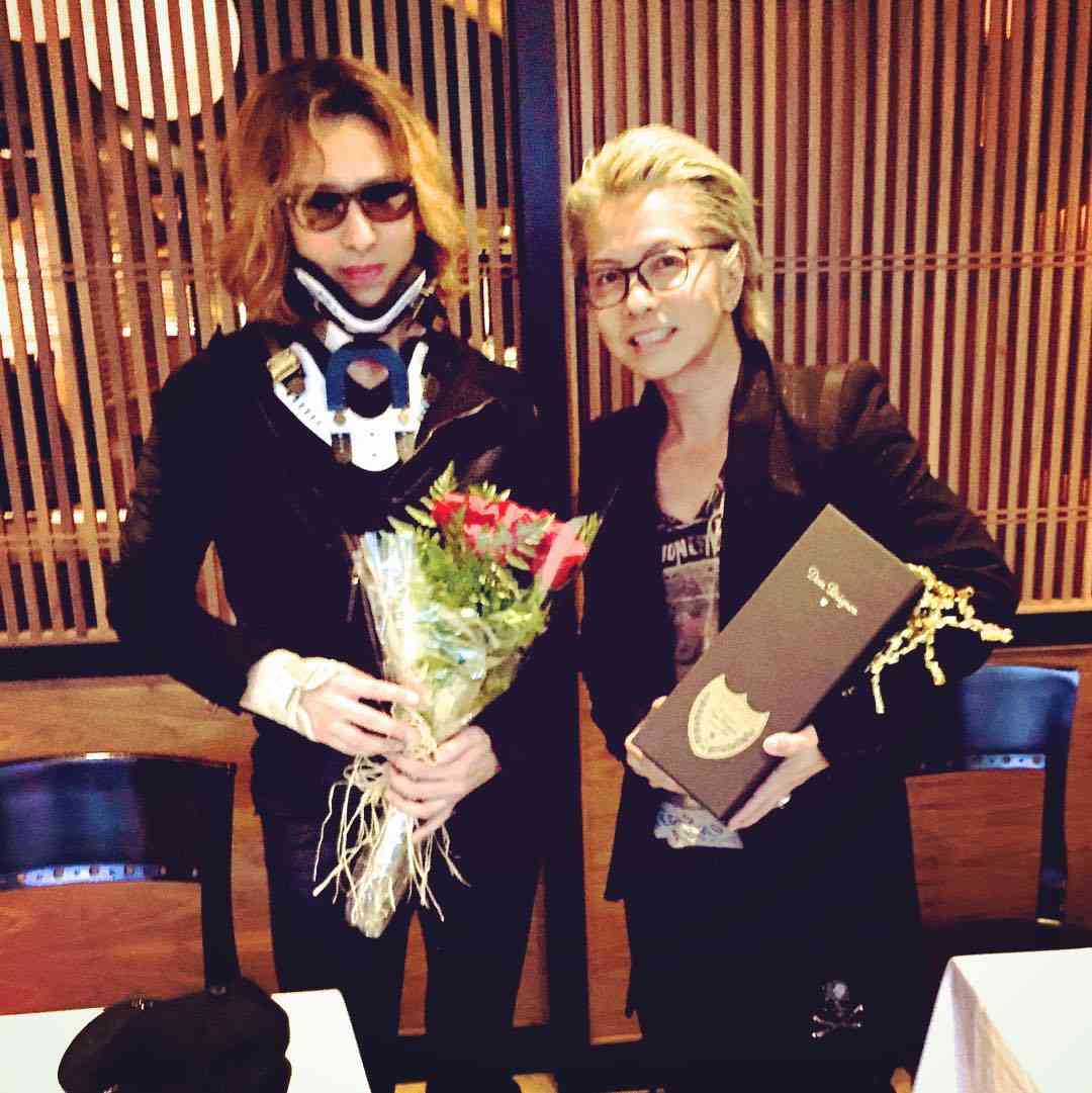 こちらは激レア!「X JAPAN」のYOSHIKIさんとのツーショット写真です。YOSHIKIさんは身長175センチあり、hydeさんとの身長差は14センチになります。画像を見ても納得の身長差ですね!