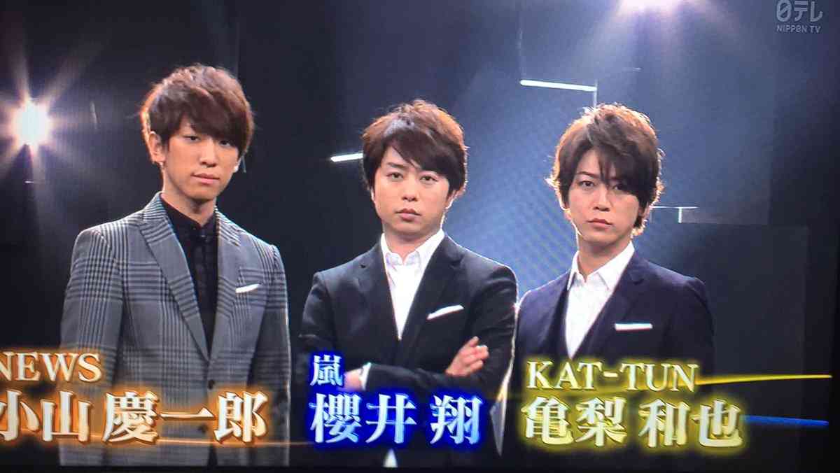 こちらはNEWSの小山慶一郎さんと嵐の櫻井翔さんとのスリーショットです。