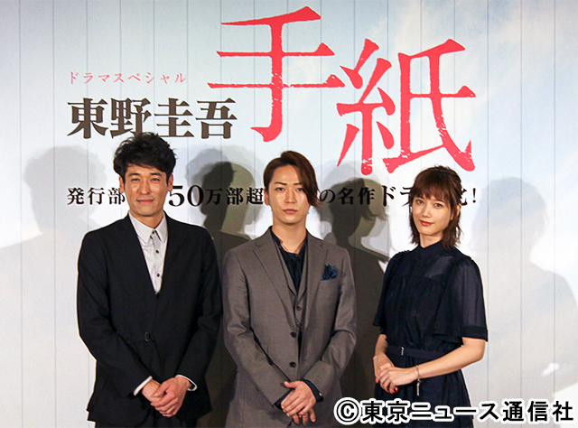 こちらは2018年12月にテレビ東京で放送されたドラマ「東野圭吾 手紙」の宣伝で共演した佐藤隆太さんと本田翼さんとのスリーショットです。