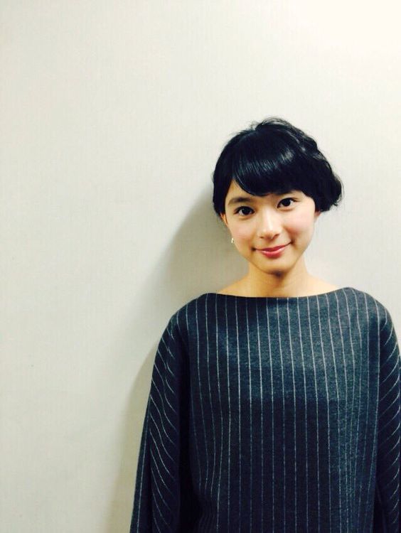 シックなトップスとまとめ髪で非常に大人っぽく落ち着いて見えます。大物女優の片鱗が見え隠れしています。