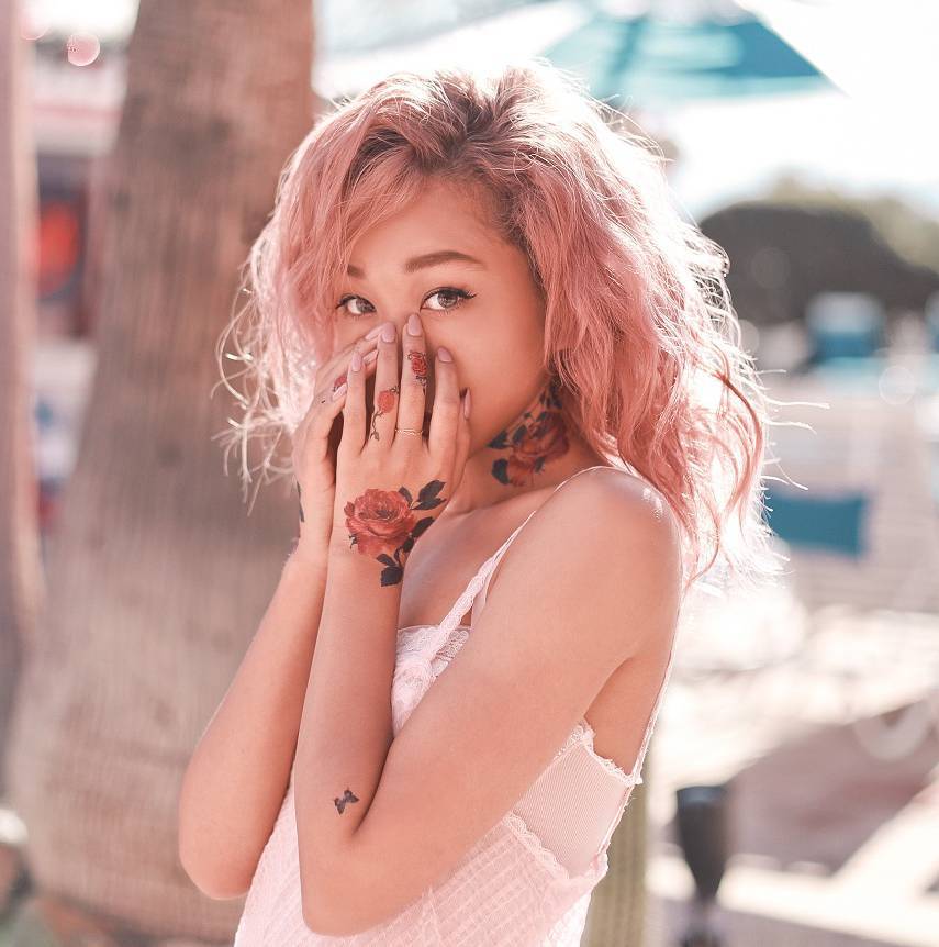 青山テルマさんのタトゥーに関しては、下の写真のような派手なバラのデザインが大変話題になりました。しかしその後左手首のタトゥーが消えている写真が公開され、これはプリントだったのではないかと言われました。