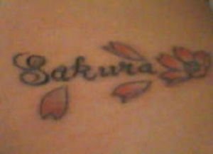 左腰とお尻にあるタトゥーは、どちらも水着を着ても少ししか見えない場所にあります。しかもデザインがとても可愛く、SAKURAというローマ字とともに名前に因んだサクラの花びらがち散らばっています。