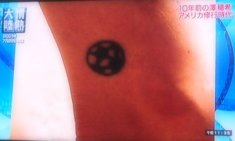 下の画像だと星のように見えますが、これはなんとサッカーボールのタトゥーなのだそうです。さすが元サッカー選手だけあって、サッカーも対して思い入れがあるのですね。