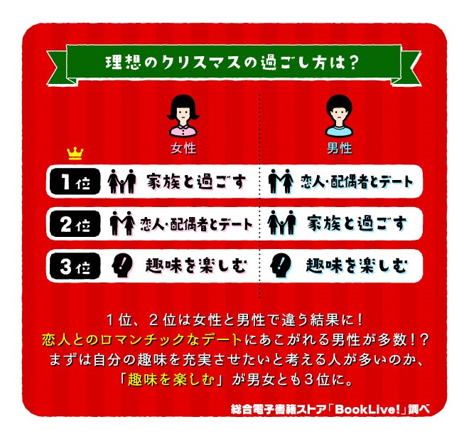 今回は、総合電子書籍ストア「BookLive!」が会員を対象に行った『「クリスマスの理想と現実」に関する意識調査』の結果をまとめます!