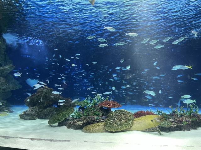 サンシャイン水族館に到着したら、まずは屋内エリアで色とりどりの魚たちやクラゲを楽しみましょう。幻想的なクラゲの展示は、まるで別世界にいるような気分に浸れます。