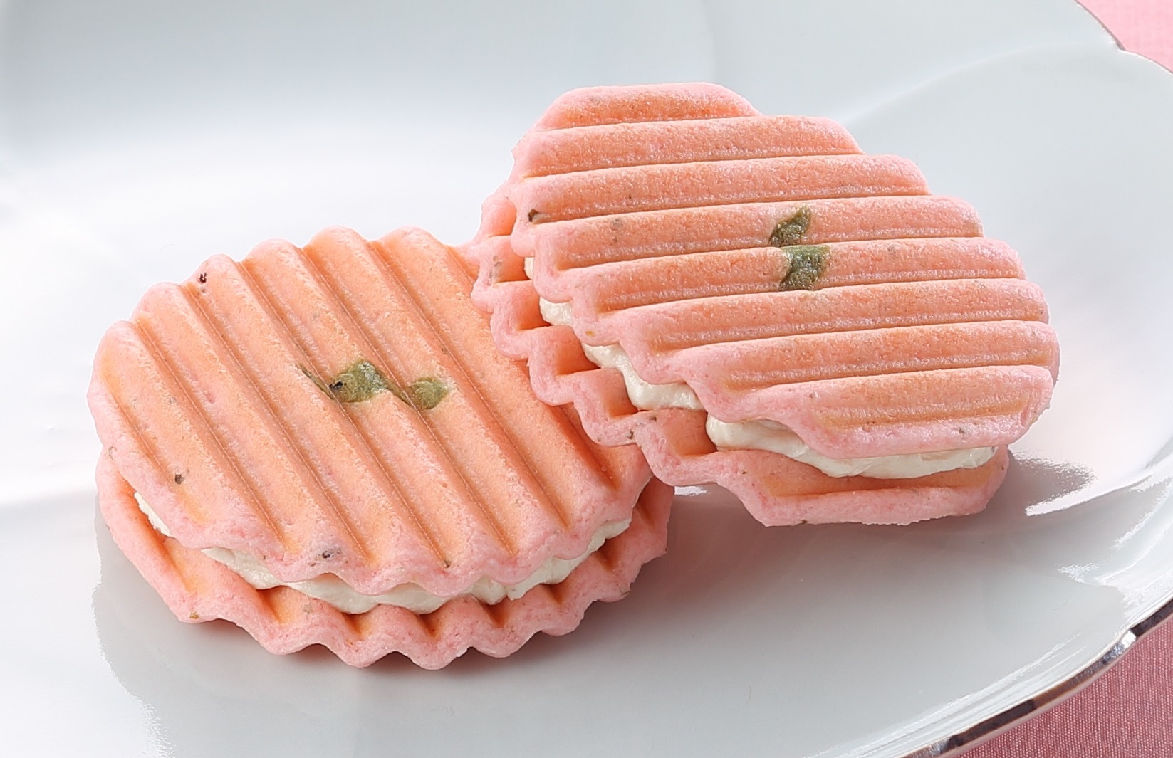 桜葉を練り込んだピンクのクッキー「桜ヴァッフェル」