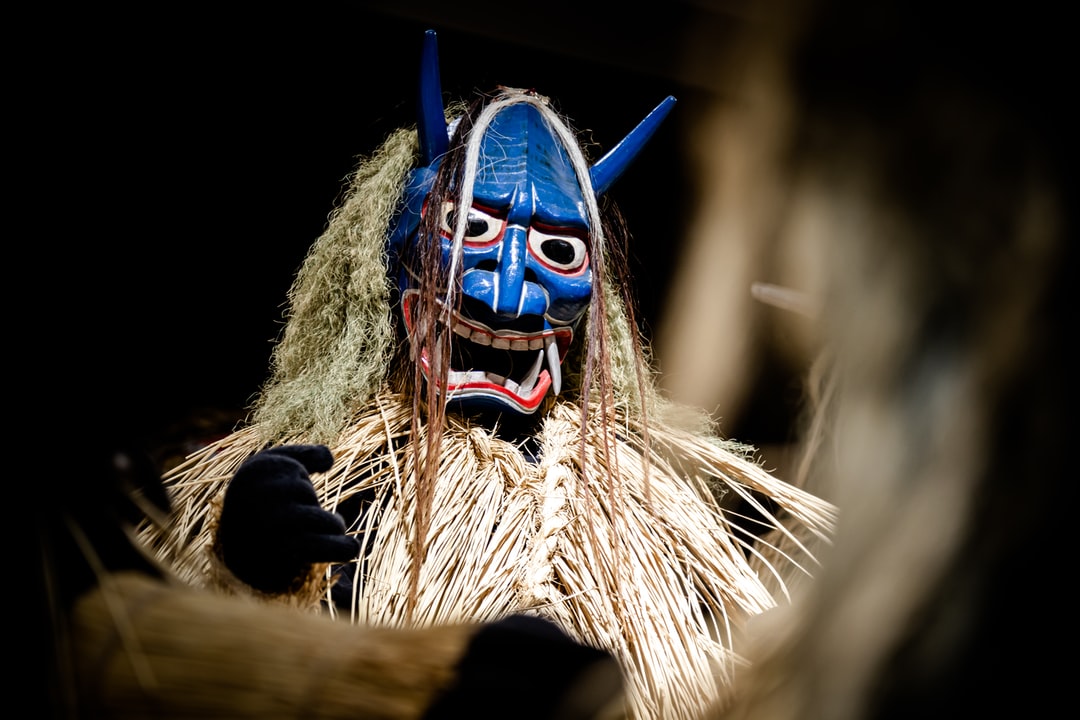 「泣く子はいねがぁ~!悪い子はいねがぁ~!」でおなじみのなまはげは、秋田県男鹿(おが)半島に伝わる伝統です。大晦日の晩、鬼の面をつけてナマハゲに扮した男性が家々を練り歩きます。その姿はかなり恐ろしく、子どもなら泣き叫んでしまうはず…。