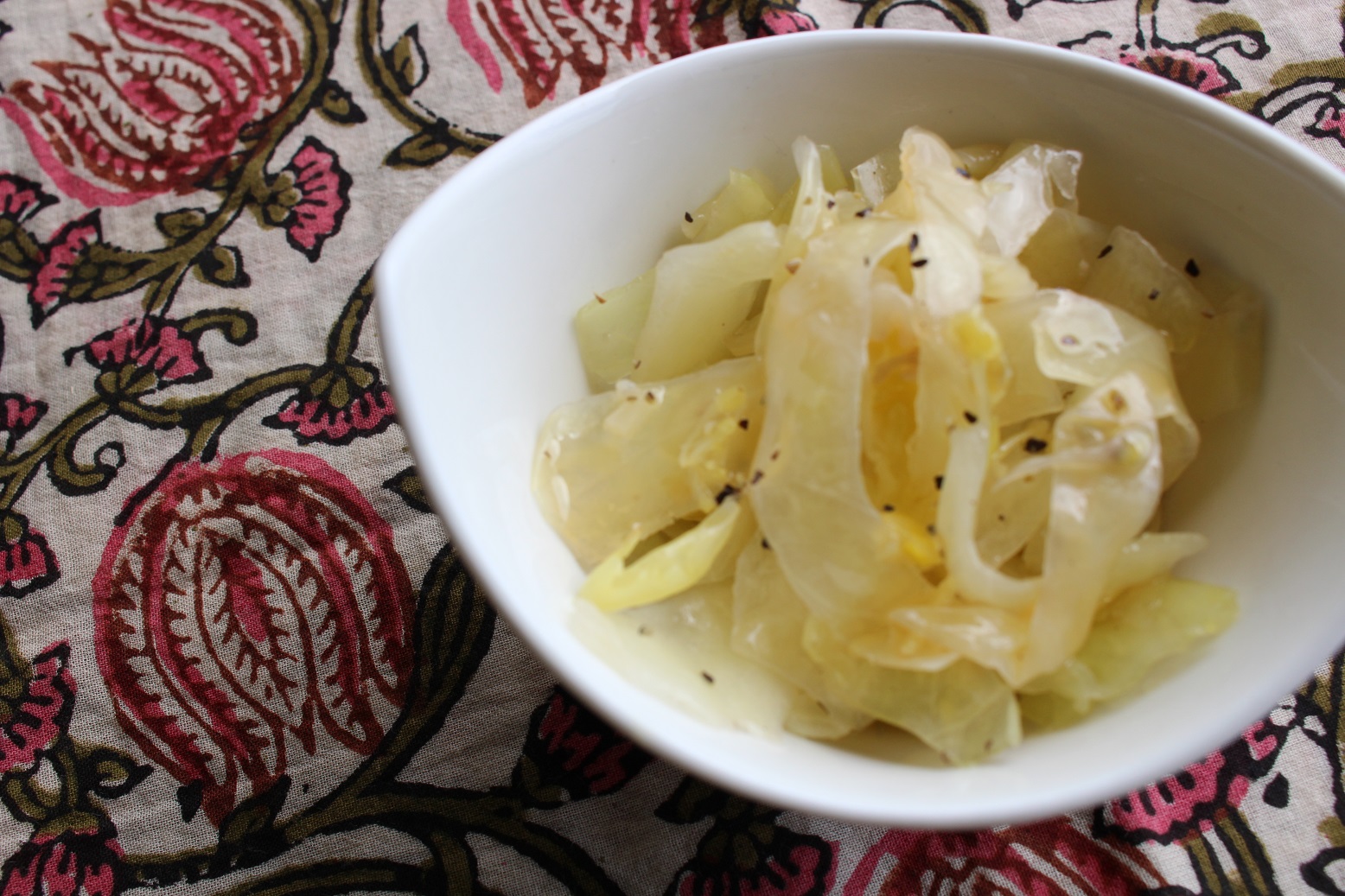 ①キャベツを太目の千切りにし、塩で揉んで少しおく。出た水分を捨てキャベツをボウルに入れる。