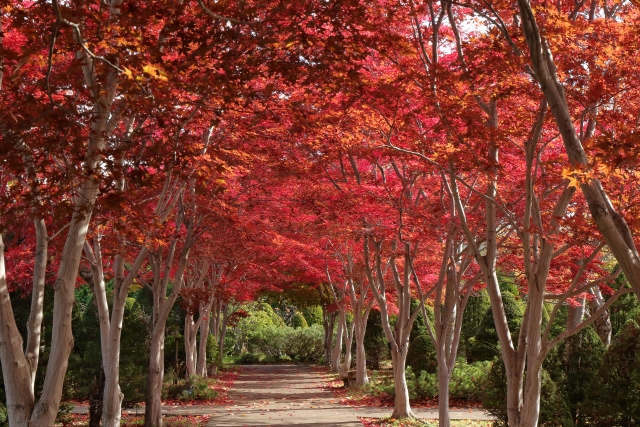 関東の中でも指折りの敷地を持ち、四季折々の種類の花を見物することができる名所です。10月中旬になると、鮮やかな赤いコキアの紅葉が見られます。この他にも、秋にはコスモスやソバなども見ることができます。植物だけではなく、様々なレジャー施設もあるので、おすすめのレジャースポットです!