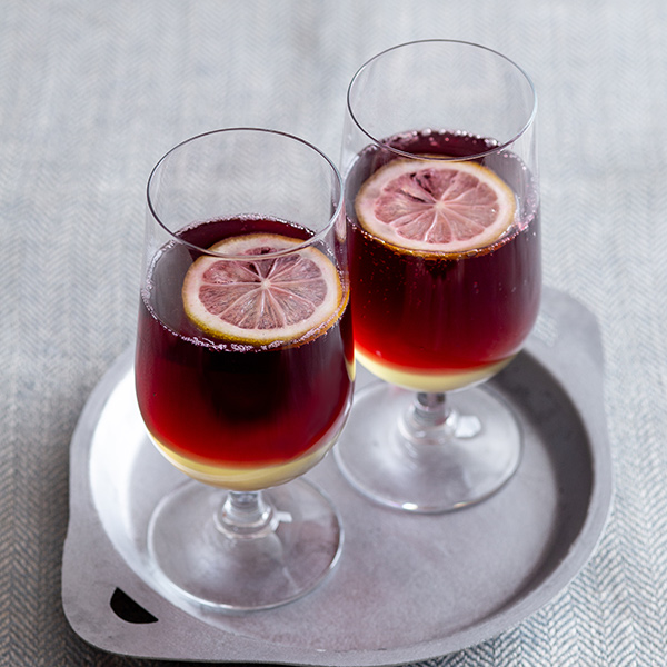 5.アメリカンレモネードにする際は、レモンシロップ1:炭酸水2:赤ワイン2の割合で美味しく召し上がれます。仕上げに4のレモンのスライスを1枚浮かべて仕上げます。