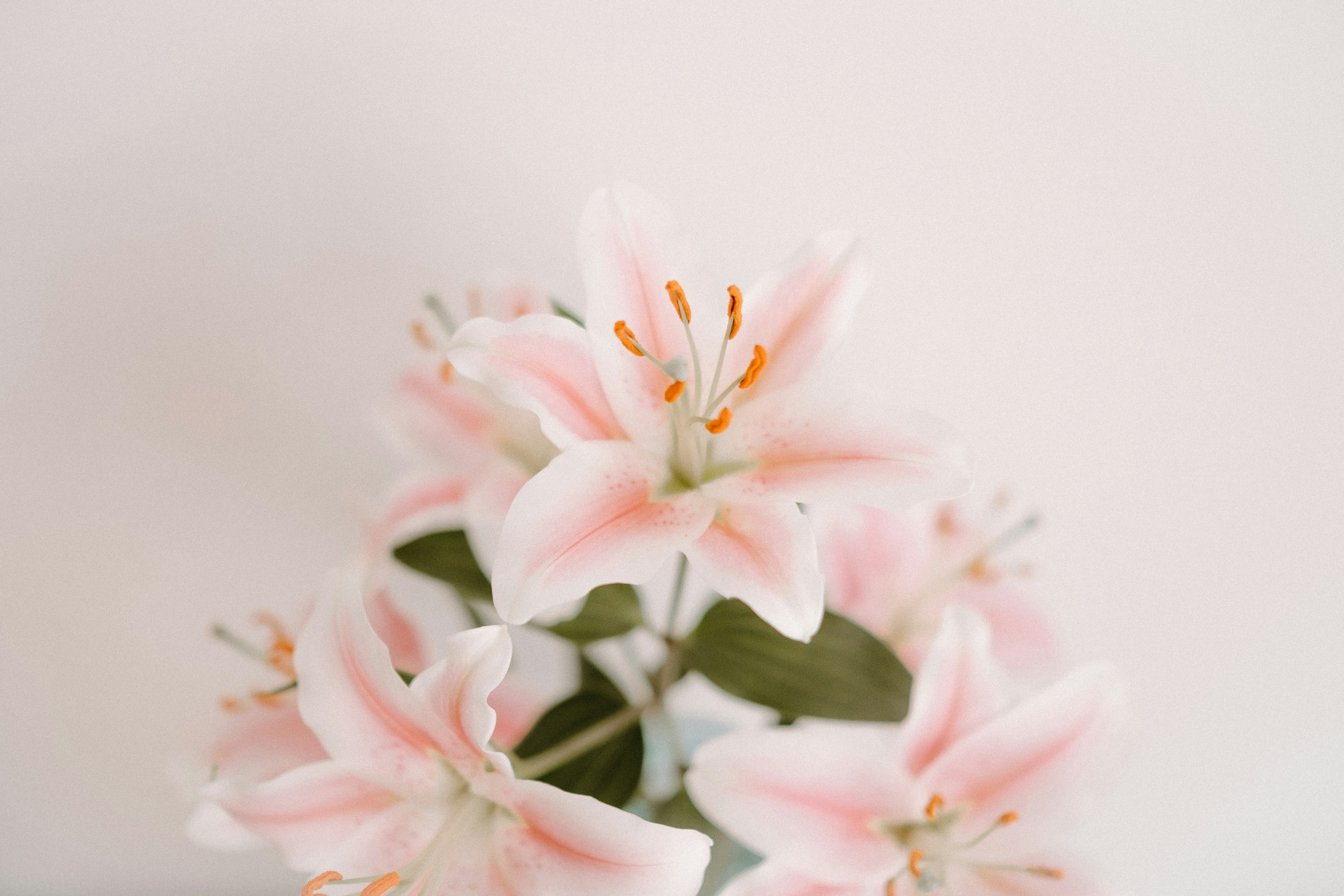 百合はとても大きな花びらを持つ豪華な花ですね。春の終わりから夏にかけて咲く花の百合は、白やピンクなどが人気です。
