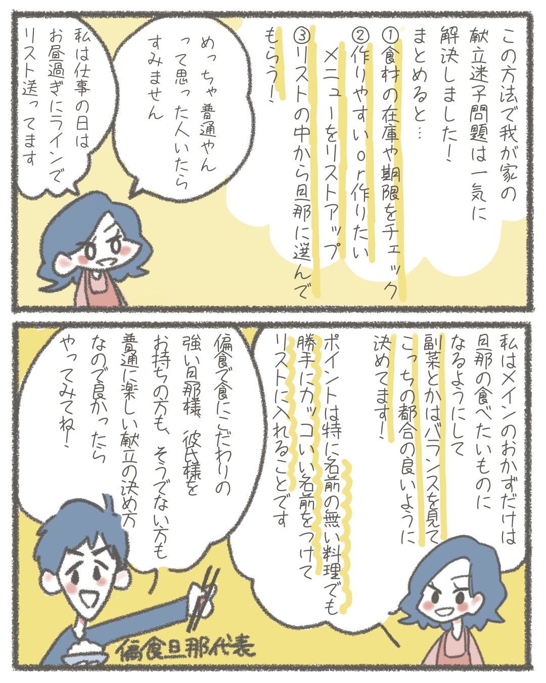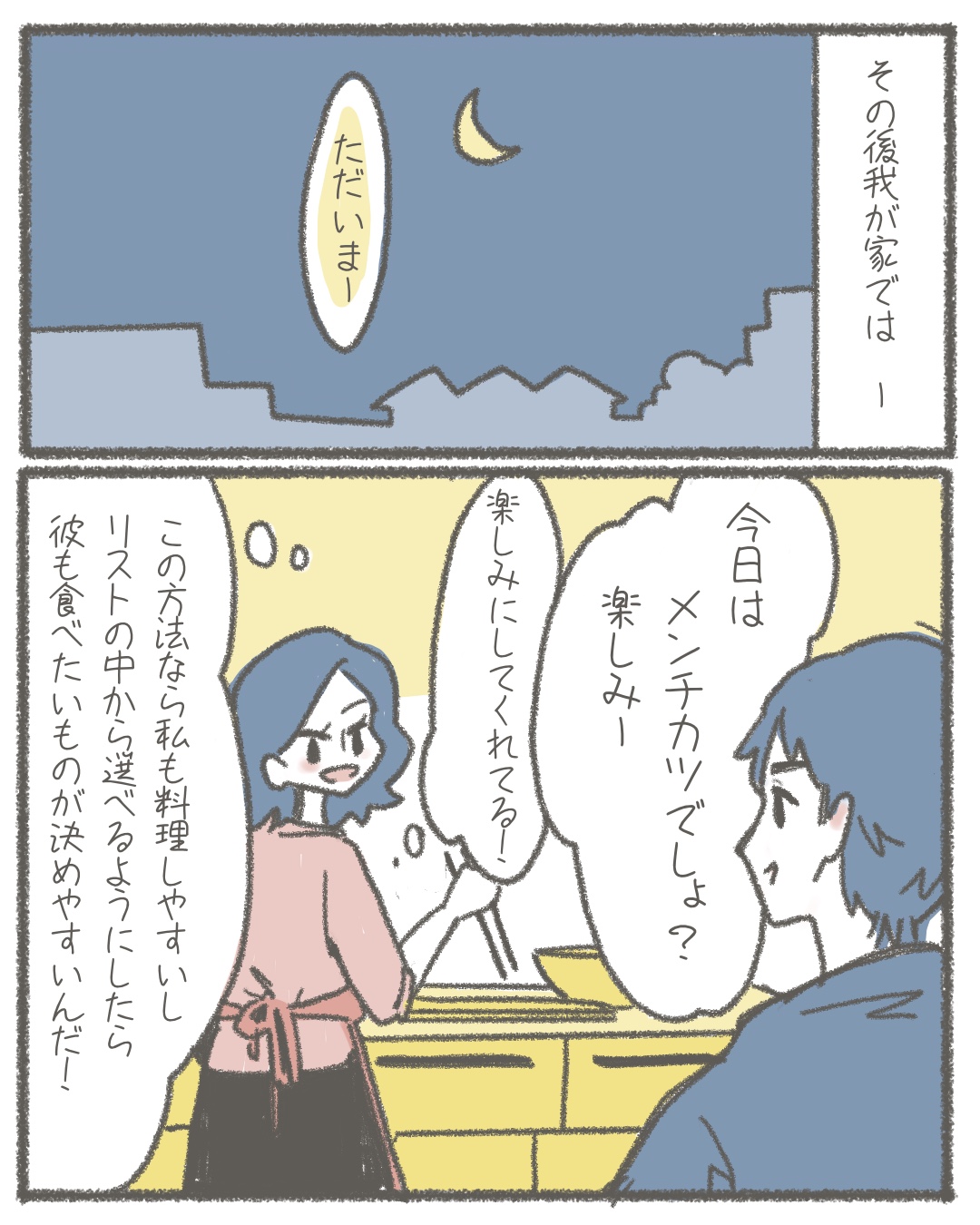 2人暮らしのゆる家事日記~気まぐれ旦那の献立作りの巻き~後編【Lovely漫画】 オリジナル漫画 2022年3月29日 目次これまでのお話はこちら! 2人暮らしのゆる家事日記~気まぐれ旦那の献立作りの巻き~前編~【連載】 | Lovely[ラブリー] ©みんみ 献立難民さんにはこちらもおすすめ! おうちカフェレシピ22選!家にあるもので出来る簡単ヘルシーメニュー | Lovely[ラブリー] おうちの中にいることが多くなったこの時期、自身で料理をする機会も増えたのではないでしょうか。外食したくてもなかなか難しく、おうち料理もマンネリしがち…。そんなときは、カフェ風なおしゃれなご飯を作って気分を上げていきましょう!家にあるものでできる簡単ヘルシーメニューを紹介します。 飽きたらアレンジ!そうめんの簡単人気アレンジレシピ29選 | Lovely[ラブリー] 夏の季節にどうしても貰い物などで増えてしまうそうめん。そのまま食べるのももちろん美味しいですが、飽きてきたらアレンジするのもひとつの方法です。今回は、飽きた時にチェックしたいそうめんの簡単アレンジレシピについてご紹介していきます。 鶏肉(チキン)の和風レシピまとめ!パパっと作れるお役立ちレシピ♪ | Lovely[ラブリー] 鶏肉は安くてヘルシーで栄養満点の食材です!あっさりした旨味のある鶏肉はダイエット中の女性でも安心して食べられます。今回は鶏肉を使った和の時短レシピをまとめてみました!時間がないときでも、誰でもパパッと簡単に作ることができる鶏レシピです。 最新情報はInstagramで! この投稿をInstagramで見る Lovely漫画ラボ(@lovely.jp_manga)がシェアした投稿 – 2020年 6月月3日午後8時11分PDT ライター Lovely編集部 編集部レポや最新情報など皆さんの「知りたい」をお届け!よろしくお願いします♡ Related article / 関連記事 オリジナル漫画 メンヘラ彼氏にサヨナラ【Lovely漫画】 ©みんみ 2022年3月29日 オリジナル漫画 年下イケメン彼氏に翻弄されるオンナの毎日#3【Lovely漫画】 ©みんみ 2022年3月29日 オリジナル漫画 年下イケメン彼氏に翻弄されるオンナの毎日#1【Lovely漫画】 ©みんみ「初めての○○の話 前編」 2022年3月29日 オリジナル漫画 年下イケメン彼氏に翻弄されるオンナの毎日#2【Lovely漫画】 ©みんみ「初めての○○の話 後編」 2022年3月29日 オリジナル漫画 よかったらシェアしてね! URLをコピーしました! URLをコピーしました! 【夢占い】彼女に浮気された夢の意味13選|もしかして予知夢?心理状態も解説 | plush 恋愛相談はどこで?相談所・掲示板・アプリでする?男友達にする?