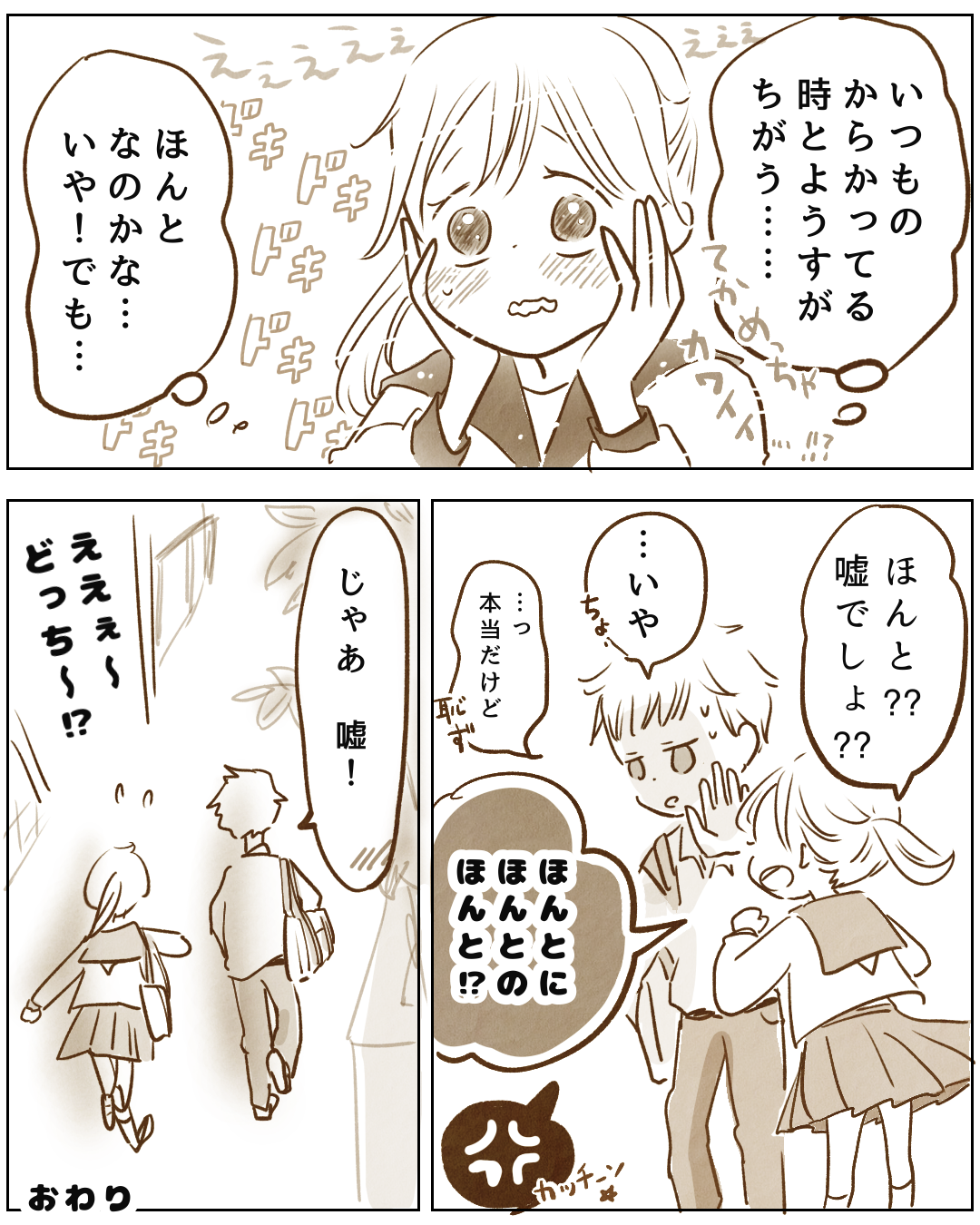 キュンとする恋の思い出【Lovely漫画】 オリジナル漫画 2022年3月29日 目次ああ、甘酸っぱい!こちらの学園漫画もチェック! 忘れられない恋 | Lovely[ラブリー] 中学・高校と一緒だった彼に6年間片思いしていた私。告白できないまま卒業の日がやってきて…。©beth/エピソード:すーちゃん あまずっぱい恋 | Lovely[ラブリー] ©azusa/エピソード:ぐら 卒業式 全校生徒の前でサプライズ#1 | Lovely[ラブリー] ©りん/エピソード:こなつ 卒業シーズンに読みたい泣ける・切ない・グッとくる学園漫画ランキングTOP10! | Lovely[ラブリー] 20代・30代・40代に「卒業式にまつわる思い出」を大調査!それぞれの「アオハル」を紐解いたら、卒業アルバムや第二ボタン…といった思い出のアイテムに違いがあることがわかりました。卒業シーズンに読みたい漫画ランキングも発表します! ライター Lovely編集部 編集部レポや最新情報など皆さんの「知りたい」をお届け!よろしくお願いします♡ Related article / 関連記事 オリジナル漫画 メンヘラ彼氏にサヨナラ【Lovely漫画】 ©みんみ 2022年3月29日 オリジナル漫画 年下イケメン彼氏に翻弄されるオンナの毎日#3【Lovely漫画】 ©みんみ 2022年3月29日 オリジナル漫画 2人暮らしのゆる家事日記~気まぐれ旦那の献立作りの巻き~後編【Lovely漫画】 ©みんみ 2022年3月29日 オリジナル漫画 年下イケメン彼氏に翻弄されるオンナの毎日#1【Lovely漫画】 ©みんみ「初めての○○の話 前編」 2022年3月29日 オリジナル漫画 年下イケメン彼氏に翻弄されるオンナの毎日#2【Lovely漫画】 ©みんみ「初めての○○の話 後編」 2022年3月29日 オリジナル漫画 よかったらシェアしてね! URLをコピーしました! URLをコピーしました! 【夢占い】彼女に浮気された夢の意味13選|もしかして予知夢?心理状態も解説 | plush 恋愛相談はどこで?相談所・掲示板・アプリでする?男友達にする?