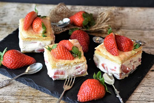 カットケーキではイチゴをたっぷり使ったタルトが特に人気があります。しっとりタルトの上に濃いカスタードクリームを使ったイチゴのタルトは見た目も綺麗ですが味も最高です♡