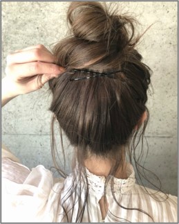 STEP3 ねじった髪をくるっとまとめて、ピンでまとめる