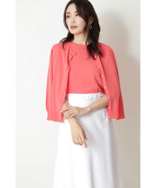 肌に触れるとひんやり感じる上品で女性らしいニットカーディガンです。接触冷感素材だけでなく、紫外線を通しにくい加工も施されています。