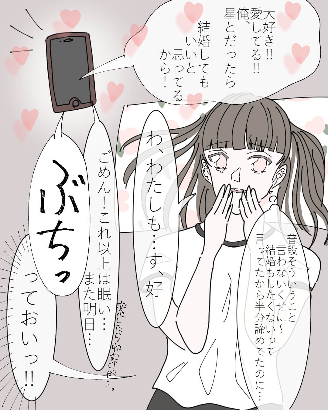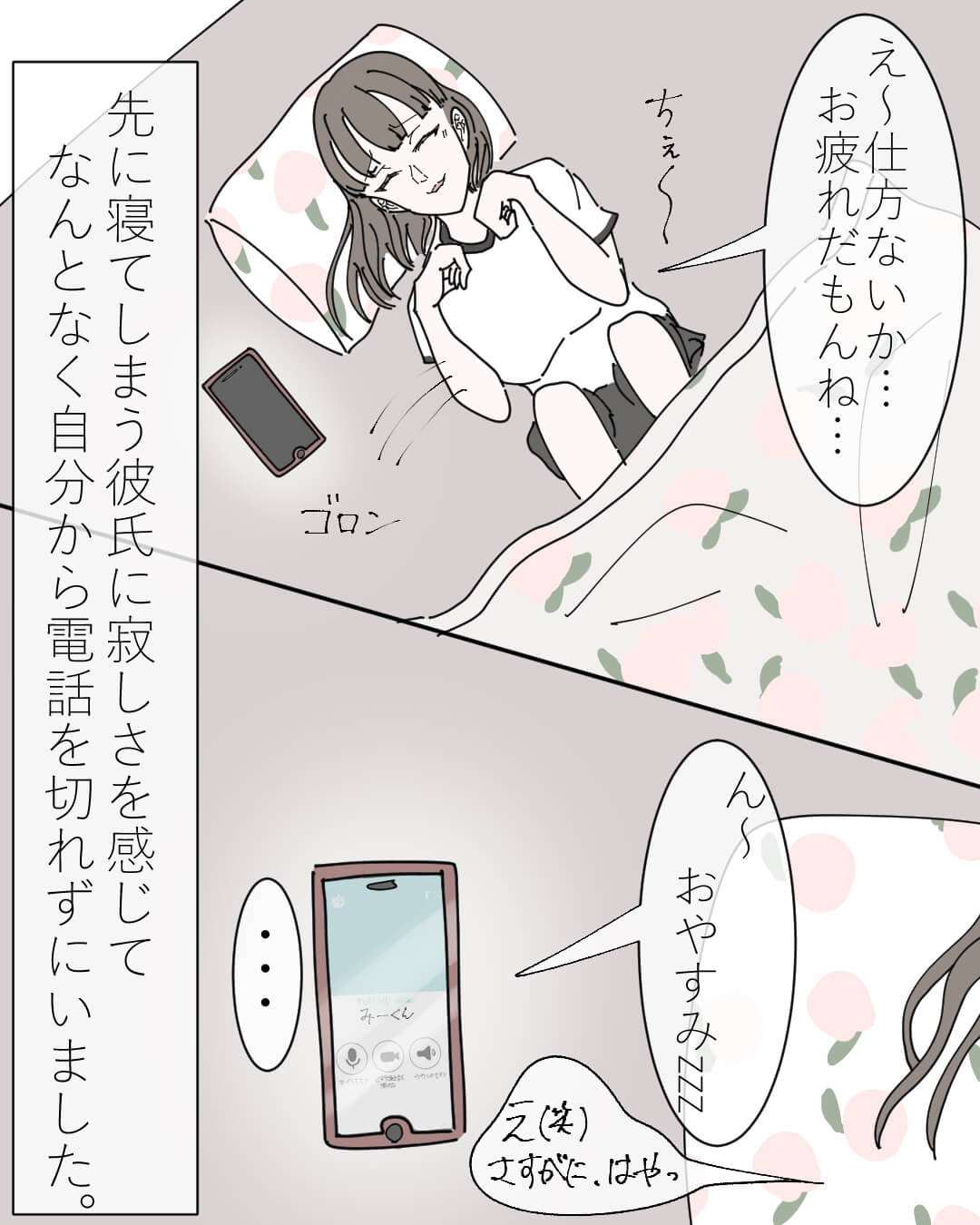 寝落ち通話で素敵な夜を【Lovely漫画】 オリジナル漫画 2024年8月5日 suiさんの作品をもっと読む! suiさんの作品一覧【Lovely漫画】 suiさんの人気作をおまとめしています! 遠距離恋愛についてもっと見たい人はこちら! 夜の電話【Lovely漫画】 年上彼氏と中距離恋愛中の私。毎晩の電話が日課になっています。ところが、今日の電話は彼の返事が素っ気なくて…。©なつ/エピソード:めめ 同期との運命の出会い【Lovely漫画】 研修で一緒になった同期に一目惚れした私。特に進展もなく迎えた研修最終日、彼から食事に誘われて…。©マナミン/エピソード:ゆゆまる。 遠距離恋愛で会う頻度はどうやって決める?上手くいくために押えておきたいポイント! 遠距離恋愛をしているカップルも少なからずいることでしょう。SNSやコミュニケーションツールが発達した現代ですが、やはり直接会って話したり触れあいたいものです。そこでネックになるのが合う頻度ですよね。今回は遠距離恋愛の会う頻度について解説します。 遠距離恋愛中の男の本音が知りたい!男性心理を上手に活かす遠恋テクニックとは? 遠距離恋愛中、男性はどんな本音を隠し持っているのでしょうか。遠距離恋愛では女性の行動次第で男性の恋愛感情をグンと上げることができます。遠距離恋愛の男性心理を理解して、さらにラブラブになるテクニックを身につけましょう。 ライター Lovely編集部 編集部レポや最新情報など皆さんの「知りたい」をお届け!よろしくお願いします♡ 目次Related article / 関連記事 遠距離 婚約ミサンガ【Lovely漫画】 彼が沖縄のおみやげをたくさん買ってきてくれた。その中にはミサンガも。すると彼が突然驚きの言葉を!?©しのだちかこ/エピソー… 2024年11月25日 遠距離 夜の電話【Lovely漫画】 年上彼氏と中距離恋愛中の私。毎晩の電話が日課になっています。ところが、今日の電話は彼の返事が素っ気なくて…。©なつ/エピソ… 2024年8月1日 遠距離 ポケットからキュンです♡【Lovely漫画】 遠距離の彼が精一杯気持ちを伝えてくれました♡©kurumi/エピソード:ちっち 2024年10月3日 遠距離 好きな人が出来たことが無い彼を好きにさせた話【Lovely漫画】 私が好きになったバイト先の店長は、「好き」という気持ちが分からない人で…。でも絶対に振り向かせてみせる!©しのだちかこ/エ… 2025年2月12日 遠距離 包容力のある彼氏が神だった件【Lovely漫画】 女の子の日の彼氏の対応に涙…♡©倖/エピソード:ももち 2024年10月4日 遠距離 6年前の恋に落ちた日【Lovely漫画】 丁寧なミシン作業の彼に惹かれて恋をした©ぴまを/エピソード:イチハ 2025年1月14日 遠距離 同期との運命の出会い【Lovely漫画】 研修で一緒になった同期に一目惚れした私。特に進展もなく迎えた研修最終日、彼から食事に誘われて…。©マナミン/エピソード:ゆ… 2024年8月6日 遠距離 遠距離中の彼との記念日旅行で…【Lovely漫画】 記念日旅行で、彼が不思議なゲームを提案してきて…?©しのだちかこ/エピソード:このは 2024年10月10日 遠距離 リモキュン【Lovely漫画】 遠距離だから会えないのに、リモートでさえもドキッとさせてくれる彼に惚れ直しちゃった!©おはぎ/エピソード:匿名 2022年3月29日 遠距離 中距離恋愛中の彼氏との誕生日【Lovely漫画】 埼玉と神奈川で中距離恋愛をしている私たち。週に1回の会える時間が楽しみだったのに、誕生日は彼が忙しいから会えないって…寂し… 2024年9月6日 遠距離 遠距離の覚悟【Lovely漫画】 高校で遠距離恋愛になった私たち。覚悟はしていたものの寂しくて、彼との電話中に涙が止まらなくなってしまったら…©倖/エピソー… 2024年12月20日 遠距離 私の決意【Lovely漫画】 東京と福岡で遠距離恋愛をしている私たち。ほんとはどんな時も一緒に居たいけど、こんな世の中でさらに会うのが難しくなった…。だ… 2024年9月20日 オリジナル漫画 出会いはフェリーで【Lovely漫画】 友達に会いに行くために乗った夜行フェリー。乗船前に見かけたイケメンも一緒に乗ってることがわかりドキドキ。また会えたらいいな… 2024年12月13日 遠距離 失敗した嫉妬【Lovely漫画】 チャットアプリで知り合った10歳年の差がある彼。いつも女友達と一緒の写真をいつも私に送ってくるのはなぜ…!?©サクライ/エ… 2024年8月16日 遠距離 長年の片想いに勝利した恋【Lovely漫画】 「重い。ゲームの邪魔になる」と振られた彼が忘れられなくて、彼との思い出を投稿エピソードにして気持ちを整理していた時。同い年… 2024年9月18日 遠距離 嬉し涙って出るんだ【Lovely漫画】 遠距離恋愛中の彼氏ともうすぐ付き合って1年の記念日。記念日には大好きなテーマパークに行こうねって約束をしていた…©おひつじ… 2022年3月29日 遠距離 思いがけないサプライズ【Lovely漫画】 東京と熊本で4歳年上の彼と遠距離恋愛中の私。5か月間会えない寂しさに少し負けそうになっていました。©れも/エピソード:みさ… 2025年2月4日 遠距離 不意打ちのやさしさ【Lovely漫画】 神戸と福岡で遠距離恋愛中の私たち。