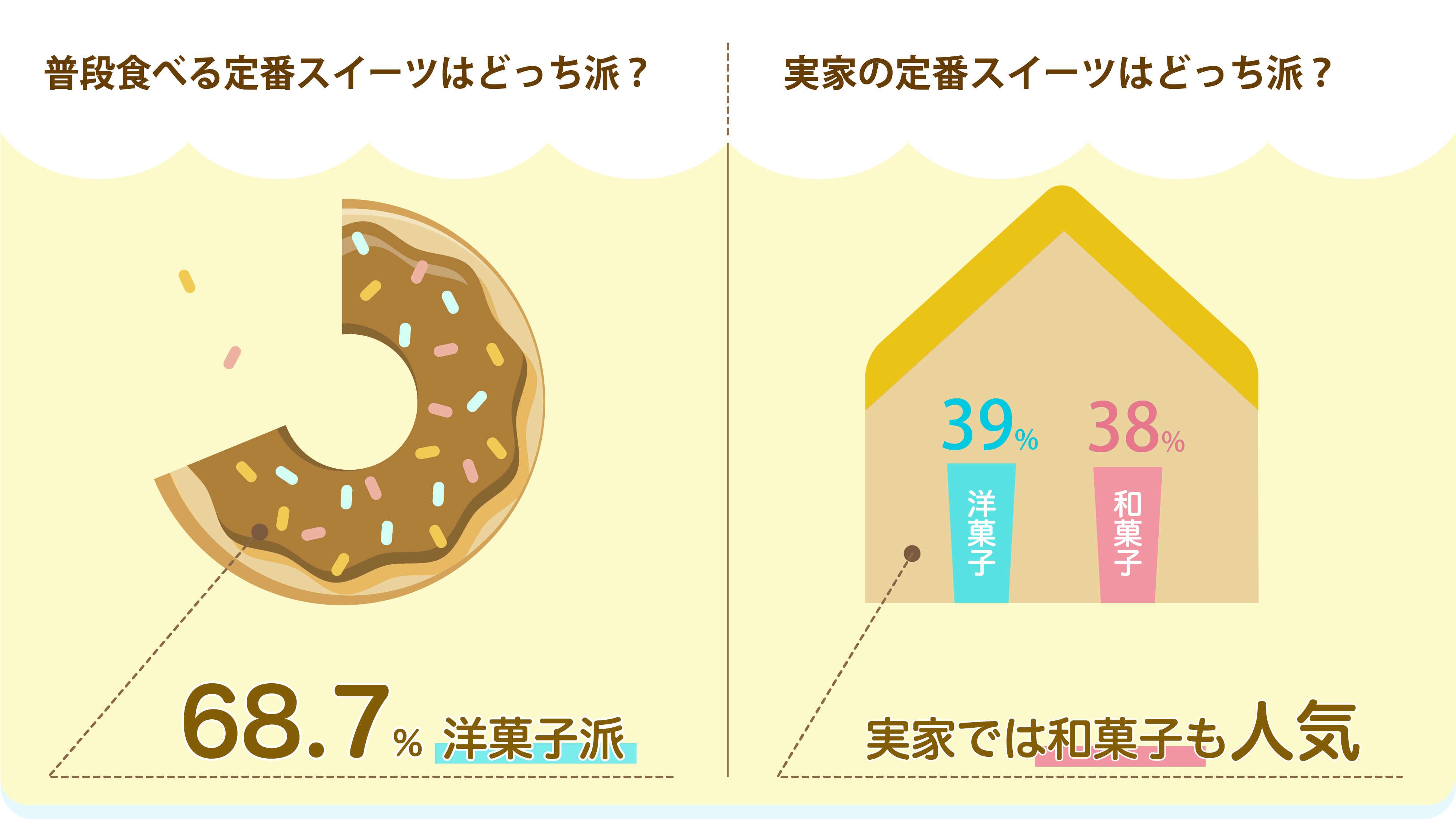 普段は洋菓子を食べる人でも、実家では和菓子を食べる人が多い傾向にあるようです。