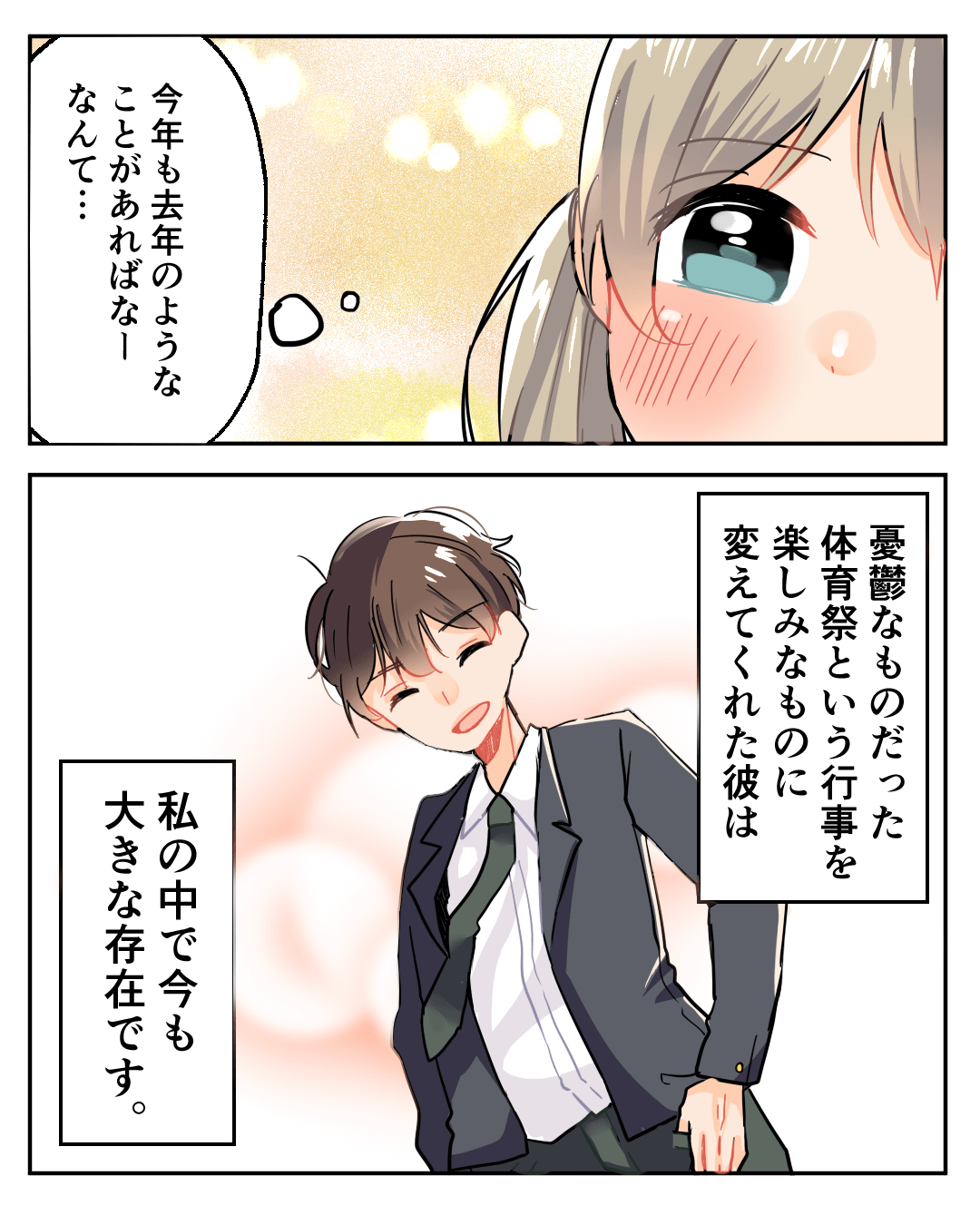 体育祭のご褒美【Lovely漫画】 オリジナル漫画 2024年9月13日 目次恋が叶いますように…片思いに関する記事はこちら 気になるバイト先の先輩【Lovely漫画】 気になる先輩からの「ある言葉」で、疲れが全部吹っ飛びました…♡©れおぱ/エピソード:ぽっぽ 2年越しの恋【Lovely漫画】 偶然に出会った彼が気になるも、連絡先を交換したのはそれから1年以上も後…©ぴまを/エピソード:こち 【脈あり診断】10の質問であの人の脈あり度がわかる!片思い女子&男子は必見! 好きな人や気になる人が脈ありなのか脈なしなのか知りたいと思っている人も多いのではないでしょうか。10個の質問から、気になるあの人の脈あり度がわかるのです。片思い女子や男子は必見!脈あり度をチェックして、気になるあの人との関係を深めていきたいですね♡ 「マンガMee-人気の少女漫画が読めるマンガアプリ」をApp Storeで 「マンガMee-人気の少女漫画が読めるマンガアプリ」のレビューをチェック、カスタマー評価を比較、スクリーンショットと詳細情報を確認することができます。「マンガMee-人気の少女漫画が読めるマンガアプリ」をダウンロードしてiPhone、iPad、iPod touchでお楽しみください。 ライター Lovely編集部 編集部レポや最新情報など皆さんの「知りたい」をお届け!よろしくお願いします♡ Related article / 関連記事 オリジナル漫画 メンヘラ彼氏にサヨナラ【Lovely漫画】 ©みんみ 2022年3月29日 オリジナル漫画 年下イケメン彼氏に翻弄されるオンナの毎日#3【Lovely漫画】 ©みんみ 2022年3月29日 オリジナル漫画 2人暮らしのゆる家事日記~気まぐれ旦那の献立作りの巻き~後編【Lovely漫画】 ©みんみ 2022年3月29日 オリジナル漫画 年下イケメン彼氏に翻弄されるオンナの毎日#1【Lovely漫画】 ©みんみ「初めての○○の話 前編」 2022年3月29日 オリジナル漫画 年下イケメン彼氏に翻弄されるオンナの毎日#2【Lovely漫画】 ©みんみ「初めての○○の話 後編」 2022年3月29日 オリジナル漫画 よかったらシェアしてね! URLをコピーしました! URLをコピーしました! ヤベェ同期に困ってます!!1【稲漫画】 男にモテる顔の女の特徴って?男が惚れるのは美人ではなかった?