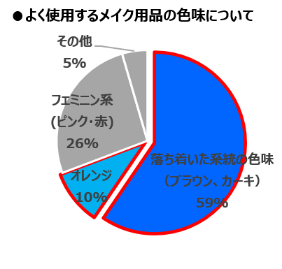 メイク分野でも、ピンクや赤などの甘めフェミニン系メイクよりも、ブラウンやカーキなどの落ち着いたカラーのメイクが約6割もの人気を占めています。