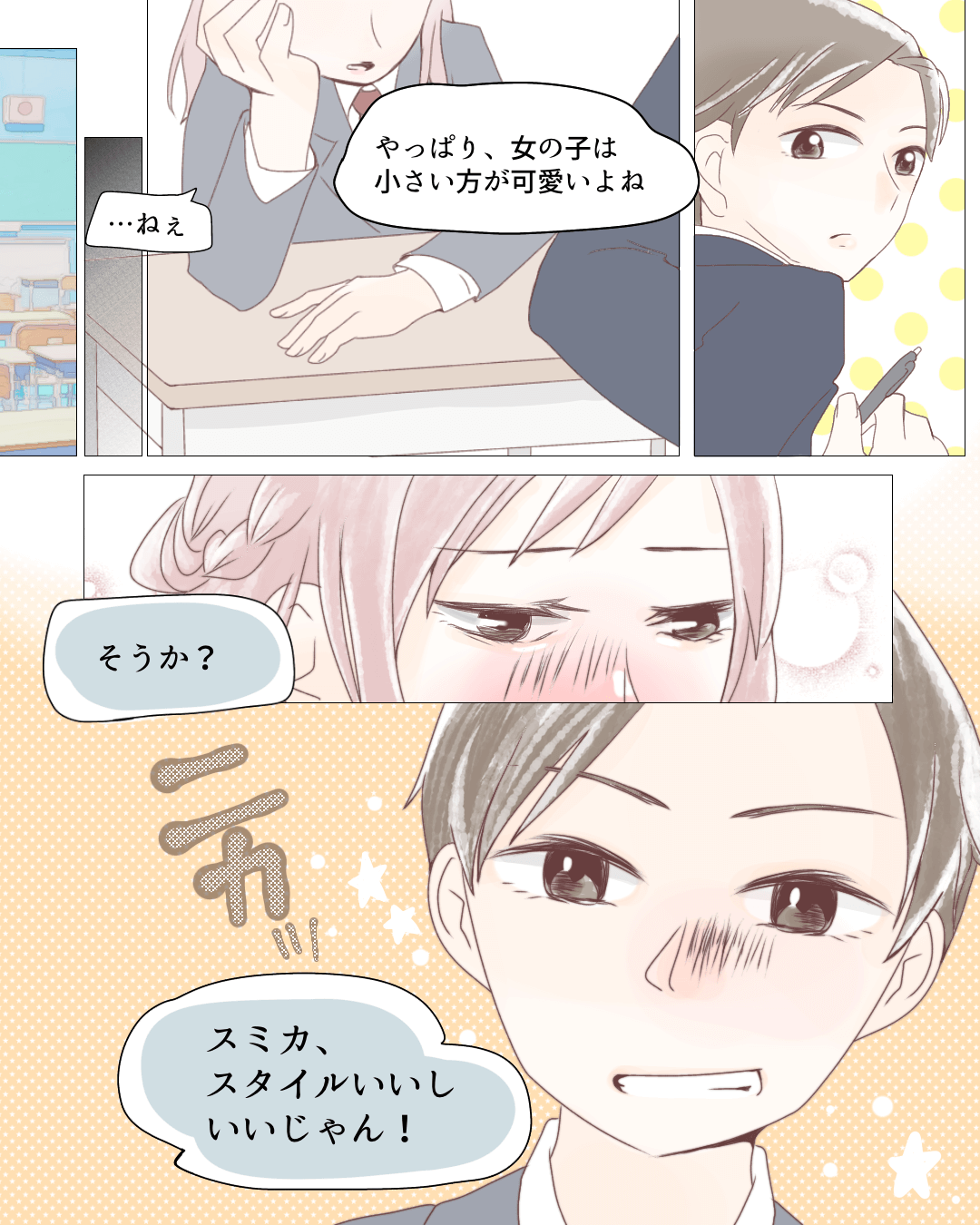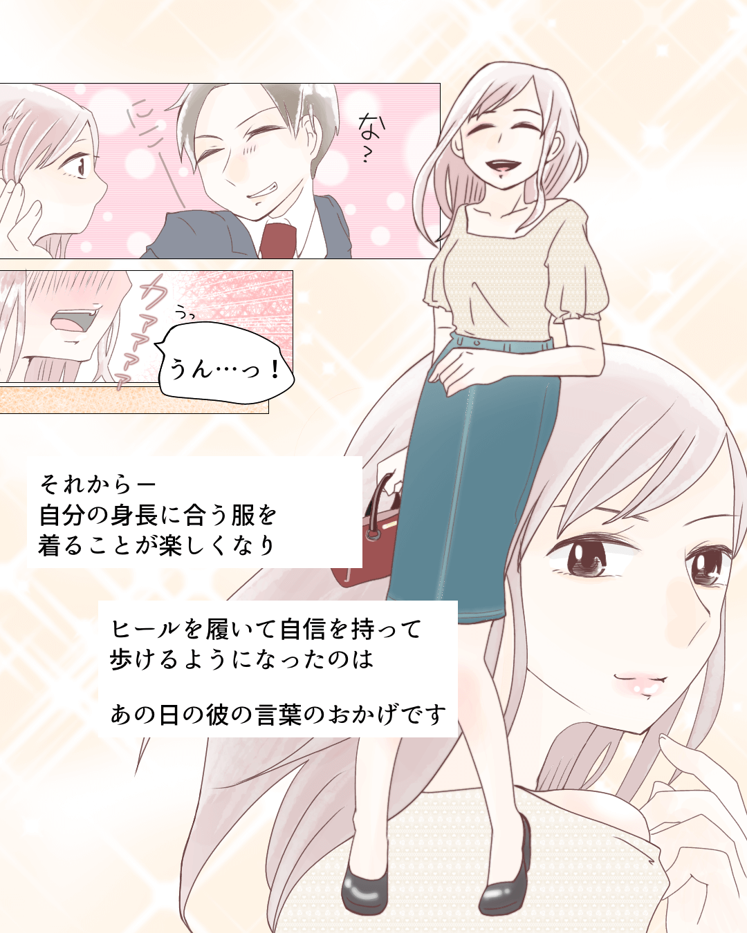 女の子は小さい方が可愛いよね…【Lovely漫画】 オリジナル漫画 2024年9月24日 しのだちかこさんの作品をもっと読む! しのだちかこさんの作品一覧【Lovely漫画】 しのだちかこさんの人気作をおまとめしています! 好きな人の力は偉大♡関連記事もチェック 体育祭のご褒美【Lovely漫画】 片思い中の彼が、憂鬱な体育祭を楽しい行事に変えてくれました♡©おなか/エピソード:るるる 先生が好き!【Lovely漫画】 先生は女子から大人気でイケメンだけど、「教師に恋なんて有り得ない」と思っていたのに…©azusa/エピソード:みや 高身長女子に男性が感じる11の魅力!コンプレックスに負けないで! 「背が高いと恋愛できない・・・」と、高身長に悩む女性は意外と多く、恋愛に消極的になっていませんか? しかし、男性にとって高身長の女性は、魅力の塊でもあるのです! そこでここでは、男性が感じる高身長女性の魅力について、紹介したいと思います! 「マンガMee-人気の少女漫画が読めるマンガアプリ」をApp Storeで 「マンガMee-人気の少女漫画が読めるマンガアプリ」のレビューをチェック、カスタマー評価を比較、スクリーンショットと詳細情報を確認することができます。「マンガMee-人気の少女漫画が読めるマンガアプリ」をダウンロードしてiPhone、iPad、iPod touchでお楽しみください。 ライター Lovely編集部 編集部レポや最新情報など皆さんの「知りたい」をお届け!よろしくお願いします♡ 目次Related article / 関連記事 オリジナル漫画 メンヘラ彼氏にサヨナラ【Lovely漫画】 ©みんみ 2022年3月29日 オリジナル漫画 年下イケメン彼氏に翻弄されるオンナの毎日#3【Lovely漫画】 ©みんみ 2022年3月29日 オリジナル漫画 2人暮らしのゆる家事日記~気まぐれ旦那の献立作りの巻き~後編【Lovely漫画】 ©みんみ 2022年3月29日 オリジナル漫画 年下イケメン彼氏に翻弄されるオンナの毎日#1【Lovely漫画】 ©みんみ「初めての○○の話 前編」 2022年3月29日 オリジナル漫画 年下イケメン彼氏に翻弄されるオンナの毎日#2【Lovely漫画】 ©みんみ「初めての○○の話 後編」 2022年3月29日 オリジナル漫画 よかったらシェアしてね! URLをコピーしました! URLをコピーしました! ヤベェ同期に困ってます!!9【稲漫画】 おデブ・ぽっちゃり女子に似合う髪型7つ!ほっそり小顔に見せるコツ