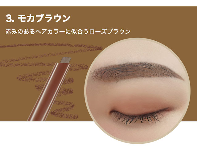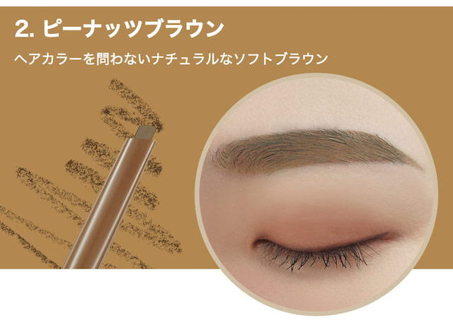 立てても寝かせても自由自在に整った自然な眉を描ける薄型スリムな三角芯の「エッジドローイングスリムアイブロウ」。カラーは全4種類で、自身の髪色に合わせて選ぶことができます。