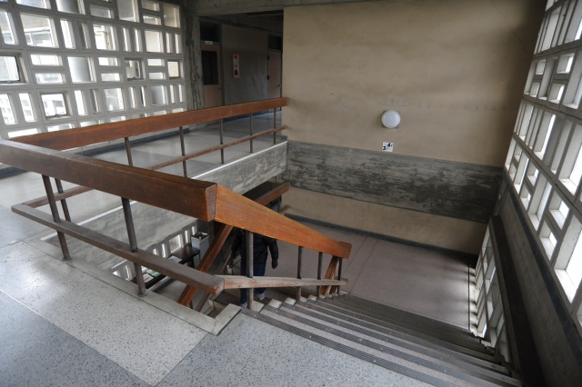 学校の廊下はメリハリのない単調な毎日からくる欲求不満やストレスなども暗示しています。