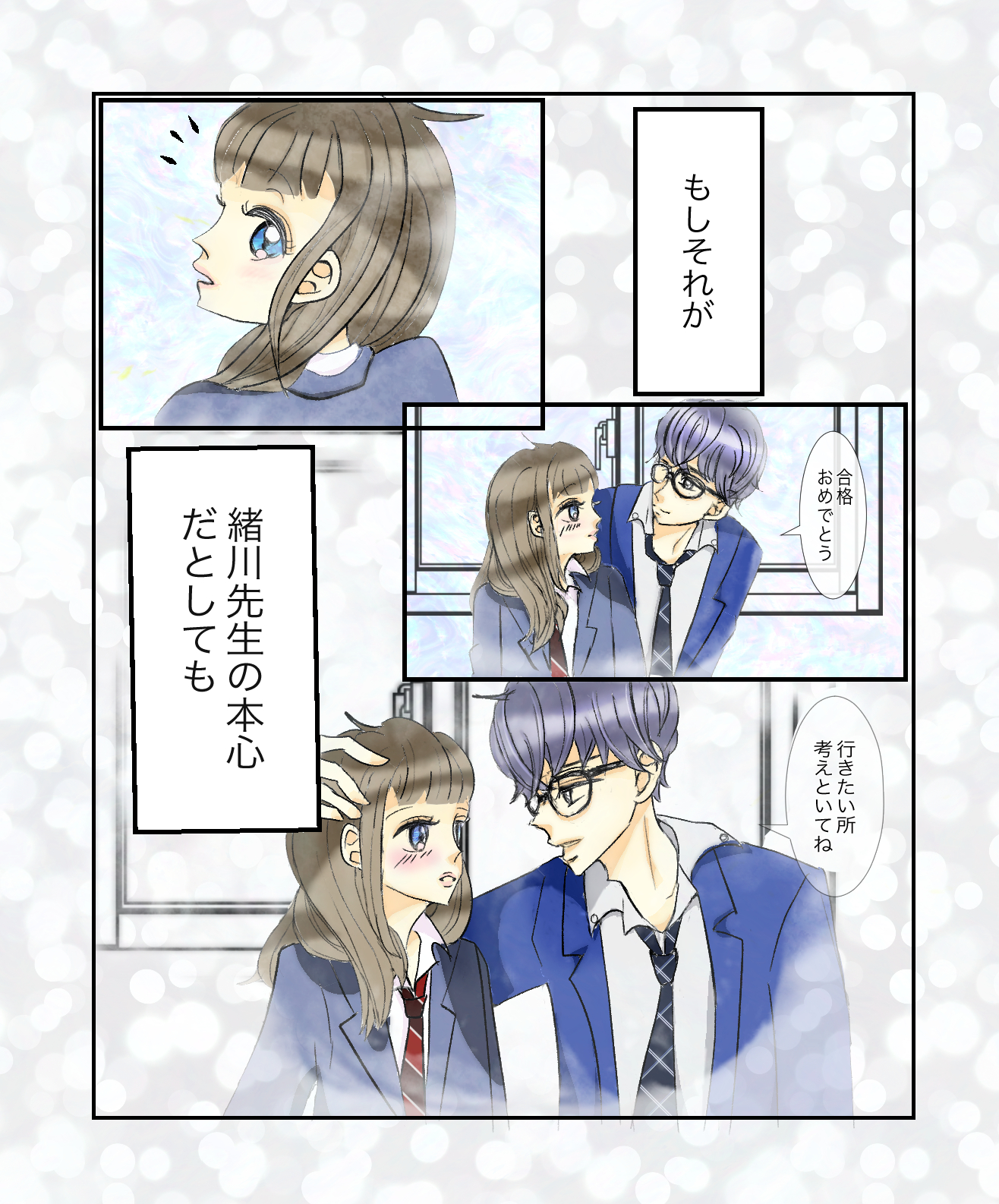卒業まで待っててください【Lovely漫画】 オリジナル漫画 2022年3月29日 好きな人は先生!こちらもチェック 先生が好き!【Lovely漫画】 | Lovely[ラブリー] 先生は女子から大人気でイケメンだけど、「教師に恋なんて有り得ない」と思っていたのに…©azusa/エピソード:みや 先生と叶わない恋【Lovely漫画】 | Lovely[ラブリー] 叶わない恋と気づきながらも、アプローチし続けた甘酸っぱい記憶。 ©いの/エピソード:ぱんさん 先生と生徒の恋愛はアリ?エピソード9選まとめ! | Lovely[ラブリー] 皆さんの通う学校に、素敵な恋はありますか?先輩、同級生、後輩、そして先生。 さまざまな恋物語が囁かれる学校で、一度は先生と生徒の禁断の恋愛に憧れたことはありませんか? 今回はそんな胸がキュンとしてしまう先生と生徒の恋愛のお話です。 先生が好きな女子必見!先生を好きになった理由と対処法13選! | Lovely[ラブリー] 高校生にもなると先生が好きになることもありますよね。 先生と生徒の恋愛は、昔から禁断の恋と呼ばれ、成就することはめったにありません。 でも、簡単には忘れられない。 先生への恋。先生が好きというあなたに送る好きになる理由別のヒミツの対処法、教えます。 ライター Lovely編集部 編集部レポや最新情報など皆さんの「知りたい」をお届け!よろしくお願いします♡ 目次Related article / 関連記事 オリジナル漫画 メンヘラ彼氏にサヨナラ【Lovely漫画】 ©みんみ 2022年3月29日 オリジナル漫画 年下イケメン彼氏に翻弄されるオンナの毎日#3【Lovely漫画】 ©みんみ 2022年3月29日 オリジナル漫画 2人暮らしのゆる家事日記~気まぐれ旦那の献立作りの巻き~後編【Lovely漫画】 ©みんみ 2022年3月29日 オリジナル漫画 年下イケメン彼氏に翻弄されるオンナの毎日#1【Lovely漫画】 ©みんみ「初めての○○の話 前編」 2022年3月29日 オリジナル漫画 年下イケメン彼氏に翻弄されるオンナの毎日#2【Lovely漫画】 ©みんみ「初めての○○の話 後編」 2022年3月29日 オリジナル漫画 よかったらシェアしてね! URLをコピーしました! URLをコピーしました! 【夢占い】彼女に浮気された夢の意味13選|もしかして予知夢?心理状態も解説 | plush 恋愛相談はどこで?相談所・掲示板・アプリでする?男友達にする?