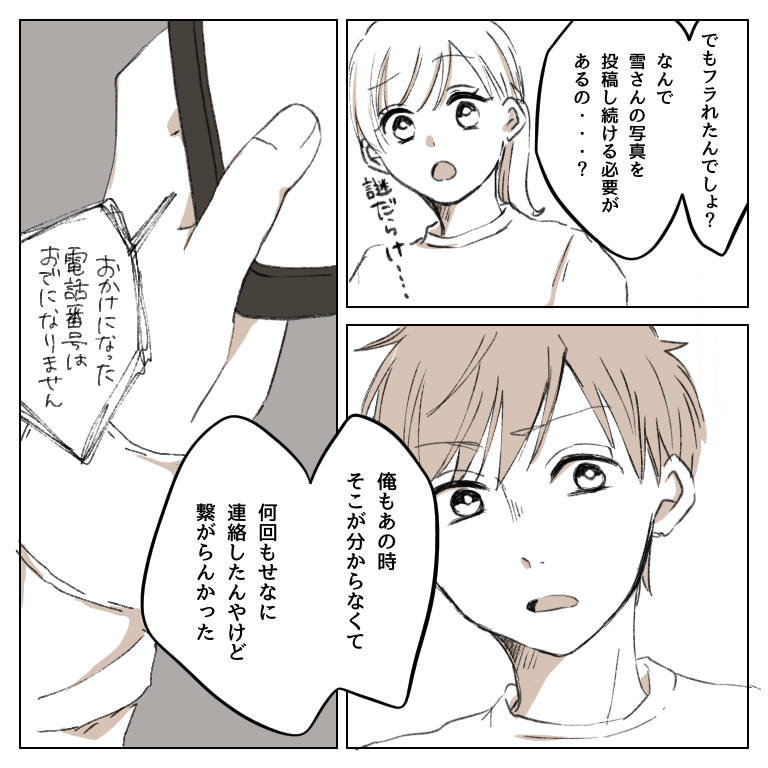 本当にいた怖い元カノ 6【magari漫画】 オリジナル漫画 2022年3月29日 ▼続きはコチラ 【最新話】本当にいた怖い元カノ 7【みぎまがり】 | Lovely[ラブリー] みぎと雪さんのカップルエッセイ♡ ©magari ▼前回のお話はコチラ 本当にいた怖い元カノ 5【みぎまがり】 | Lovely[ラブリー] みぎと雪さんのカップルエッセイ♡ ©magari ▼連載を最初から読む みぎまがりさんのInstagramは画像をタップ♡ ライター magari 圧倒的イラスト力とストーリーでSNSでも大人気の漫画家! Instagram【@mgmgr.start】 目次Related article / 関連記事 オリジナル漫画 卒業式 全校生徒の前でサプライズ①【Lovely漫画】 ©りん/エピソード:こなつ 2022年3月29日 オリジナル漫画 SNSでガチ恋しちゃいました。【Lovely漫画】 仕方なく別れた年上彼氏を吹っ切ろうと始めたSNSで…©しおり/エピソード:匿名 2023年12月12日 オリジナル漫画 ざんねんな恋辞典【Lovely漫画】 ©beth 2022年3月29日 オリジナル漫画 キュンとする恋の思い出【Lovely漫画】 ©beth/エピソード:ルンルン 2022年3月29日 オリジナル漫画 忘れられない恋【Lovely漫画】 中学・高校と一緒だった彼に6年間片思いしていた私。告白できないまま卒業の日がやってきて…。©beth/エピソード:すーちゃん 2025年2月6日 オリジナル漫画 顔に出にくいカップルの話【Lovely漫画】 azusaさんオリジナル、読み切り短編漫画の連載スタート!(不定期更新) 2022年3月29日 オリジナル漫画 里中さんと山内くんの両片想い【Lovely漫画】 告白しようと思うもいつも失敗してしまう里中さんと、勇気を出せずにいる山内くんの、初々しい短編連載スタート!©azusa 2022年3月29日 オリジナル漫画 君がいる世界は【Lovely漫画】 付き合ってからずっと言葉で伝えてくれる彼。不満をぶつけて自己嫌悪に陥ったときだって…。©sui/エピソード:まる 2023年12月12日 オリジナル漫画 2年越しの恋【Lovely漫画】 偶然に出会った彼が気になるも、連絡先を交換したのはそれから1年以上も後…©ぴまを/エピソード:こち 2023年12月12日 オリジナル漫画 彼はパパラッチ【Lovely漫画】 カメラ好きの私たちが撮影に行った日、お互いの写真を見てみると…©しのだちかこ/エピソード:まなみ 2023年12月12日 オリジナル漫画 コロナウイルスで会うのを自粛しているカップルの話【Lovely漫画】 ©azusa/エピソード:do!!! 2022年3月29日 オリジナル漫画 寝坊が彼との接点を生むなんて【Lovely漫画】 話せなかった好きな人が声をかけてくれたのは、「変な髪」のおかげ。©なぁ/エピソード:はむ 2025年1月14日 オリジナル漫画 やっぱりギャップに弱いんです【Lovely漫画】 普段は「THE男」という感じの彼の照れた顔にキュン♡©しおり/エピソード:ことり 2022年3月29日 遠距離 婚約ミサンガ【Lovely漫画】 彼が沖縄のおみやげをたくさん買ってきてくれた。その中にはミサンガも。すると彼が突然驚きの言葉を!?©しのだちかこ/エピソー… 2024年11月25日 オリジナル漫画 大好きな人の声が聞きたい。【Lovely漫画】 ©azusa/エピソード:バボちゃん 2022年3月29日 オリジナル漫画 小学2年生のプロポーズ【Lovely漫画】 お気に入りのシャーペンのお返しはなんと!?©kurumi/エピソード:みずき 2023年12月12日 オリジナル漫画 いつも支えてくれる大切な人【Lovely漫画】 彼女持ちの彼に一目惚れ。彼女と別れてご飯に行けたのに…©ぴまを/エピソード:すなぎも 2023年12月12日 オリジナル漫画 キュンとしたはなし【Lovely漫画】 ©ホシノモナカ/エピソード:N 2023年12月12日 オリジナル漫画 ツンデレ…?【Lovely漫画】 ©ホシノモナカ/エピソード:た 2022年3月29日 オリジナル漫画 最高のドライブ【Lovely漫画】 運転してくれる彼の一言に感動していたら…©しおり/エピソード:かっぱ 2024年10月10日 オリジナル漫画 よかったらシェアしてね! URLをコピーしました! URLをコピーしました! 【夢占い】彼女に浮気された夢の意味13選|もしかして予知夢?心理状態も解説 | plush 恋愛相談はどこで?相談所・掲示板・アプリでする?男友達にする?