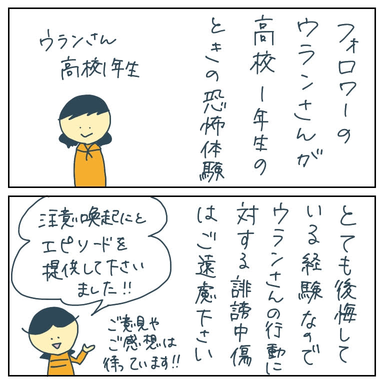 誘拐されかけたはなし1【稲漫画】 オリジナル漫画 2022年3月29日 「誘拐されかけたはなし」一覧に戻る ▼次を読む 誘拐されかけたはなし2【稲漫画】 | Lovely[ラブリー] 高校1年生が体験した恐怖のはなし!©稲 「誘拐されかけたはなし」一覧に戻る ライター 稲 エッセイ漫画を描くサラリーウーマン!Instagram【@inasan_mainichi】 目次Related article / 関連記事 オリジナル漫画 メンヘラ彼氏にサヨナラ【Lovely漫画】 ©みんみ 2022年3月29日 オリジナル漫画 年下イケメン彼氏に翻弄されるオンナの毎日#3【Lovely漫画】 ©みんみ 2022年3月29日 オリジナル漫画 2人暮らしのゆる家事日記~気まぐれ旦那の献立作りの巻き~後編【Lovely漫画】 ©みんみ 2022年3月29日 オリジナル漫画 年下イケメン彼氏に翻弄されるオンナの毎日#1【Lovely漫画】 ©みんみ「初めての○○の話 前編」 2022年3月29日 オリジナル漫画 年下イケメン彼氏に翻弄されるオンナの毎日#2【Lovely漫画】 ©みんみ「初めての○○の話 後編」 2022年3月29日 オリジナル漫画 よかったらシェアしてね! URLをコピーしました! URLをコピーしました! 【夢占い】彼女に浮気された夢の意味13選|もしかして予知夢?心理状態も解説 | plush 恋愛相談はどこで?相談所・掲示板・アプリでする?男友達にする?