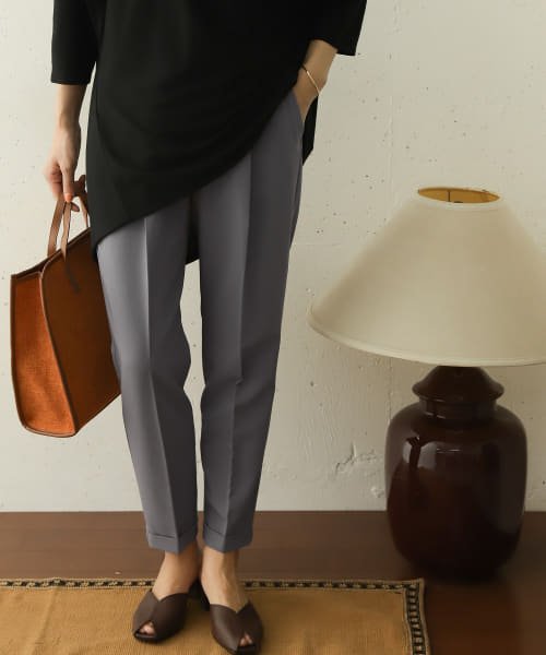 アーバンリサーチドアーズのロングセラーアイテムであるスラックスイージーパンツ。すっきりとしたシルエットに、センタープレスが入っているためよりきれいな見た目になります。ウエストがゴム仕立てでデイリーユースしやすい一着です。