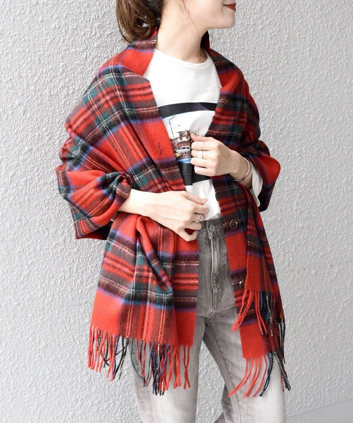 シップス ウィメン「マルチウェイチェックポンチョ」