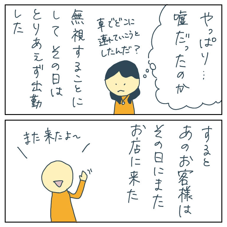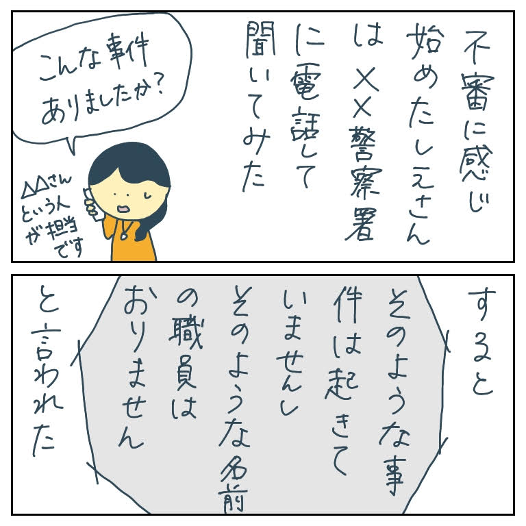 警察を名乗る人から電話があったはなし3【稲漫画】 オリジナル漫画 2022年3月29日 ▼前回のお話はこちら 警察を名乗る人から電話があったはなし2【稲漫画】 キャバ嬢の恐怖体験!©稲 ▼次を読む 警察を名乗る人から電話があったはなし4(完)【稲漫画】 キャバ嬢の恐怖体験!©稲 ライター 稲 エッセイ漫画を描くサラリーウーマン!Instagram【@inasan_mainichi】 目次Related article / 関連記事 稲 近所のお爺さんが怖かったはなし4【稲漫画】 4歳で経験した恐怖の話!©稲 2022年3月29日 稲 近所のお爺さんが怖かったはなし5【稲漫画】 4歳で経験した恐怖の話!©稲 2022年3月29日 稲 近所のお爺さんが怖かったはなし6【稲漫画】 4歳で経験した恐怖の話!©稲 2022年3月29日 稲 近所のお爺さんが怖かったはなし3【稲漫画】 4歳で経験した恐怖の話!©稲 2022年3月29日 稲 近所のお爺さんが怖かったはなし2【稲漫画】 4歳で経験した恐怖の話!©稲 2022年3月29日 稲 近所のお爺さんが怖かったはなし1【稲漫画】 4歳で経験した恐怖の話!©稲 2022年3月29日 稲 おかしな引っ越し挨拶のはなし4(完)【稲漫画】 一人暮らしの学生に起きた恐怖体験!©稲 2022年3月29日 稲 おかしな引っ越し挨拶のはなし3【稲漫画】 一人暮らしの学生に起きた恐怖体験!©稲 2022年3月29日 稲 おかしな引っ越し挨拶のはなし2【稲漫画】 一人暮らしの学生に起きた恐怖体験!©稲 2022年3月29日 稲 おかしな引っ越し挨拶のはなし1【稲漫画】 一人暮らしの学生に起きた恐怖体験!©稲 2022年3月29日 稲 警察を名乗る人から電話があったはなし4(完)【稲漫画】 キャバ嬢の恐怖体験!©稲 2022年3月29日 稲 警察を名乗る人から電話があったはなし2【稲漫画】 キャバ嬢の恐怖体験!©稲 2022年3月29日 稲 警察を名乗る人から電話があったはなし1【稲漫画】 キャバ嬢の恐怖体験!©稲 2022年3月29日 稲 カットモデル不審者のはなし5(完)【稲漫画】 試験でクタクタだった高校生の恐怖体験!©稲 2022年3月29日 稲 カットモデル不審者のはなし4【稲漫画】 試験でクタクタだった高校生の恐怖体験!©稲 2022年3月29日 稲 カットモデル不審者のはなし3【稲漫画】 試験でクタクタだった高校生の恐怖体験!©稲 2022年3月29日 稲 カットモデル不審者のはなし2【稲漫画】 試験でクタクタだった高校生の恐怖体験!©稲 2022年3月29日 稲 カットモデル不審者のはなし1【稲漫画】 試験でクタクタだった高校生の恐怖体験!©稲 2022年3月29日 稲 ショッピングモールの覆面調査不審者のはなし5(完)【稲漫画】 やや謎が残る不審者の恐怖体験!©稲 2022年3月29日 稲 ショッピングモールの覆面調査不審者のはなし4【稲漫画】 やや謎が残る不審者の恐怖体験!©稲 2022年3月29日 オリジナル漫画 よかったらシェアしてね! URLをコピーしました! URLをコピーしました! 【夢占い】彼女に浮気された夢の意味13選|もしかして予知夢?心理状態も解説 | plush 恋愛相談はどこで?相談所・掲示板・アプリでする?男友達にする?