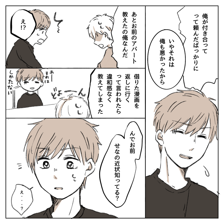 本当にいた怖い元カノ 10【magari漫画】 オリジナル漫画 2022年3月29日 ▼続きはコチラ 本当にいた怖い元カノ 11【magari漫画】 みぎと雪さんのカップルエッセイ♡ ©magari ▼前回のお話はコチラ 本当にいた怖い元カノ 9【magari漫画】 みぎと雪さんのカップルエッセイ♡ ©magari ▼連載を最初から読む ▼みぎまがりさんのInstagramは画像をタップ♡ バイ・バイ・ラバーズ~愛、お売りします。~1章 1話【Lovely創作漫画】 「人に愛されれば愛されるほど輝く金貨」ー老若男女、特定の条件もなく届くその金貨は、都市伝説として語られている。薄汚れた金貨は、受け取った愛の量と重さを持ち主に教え、ある程度まで輝きを取り戻すと、望む人の愛と引き換えることができる…。 Lovelyオリジナル漫画 みんなの恋愛エピソードを漫画化!あなたのエピソードも漫画になるかも♡ ライター magari 圧倒的イラスト力とストーリーでSNSでも大人気の漫画家! Instagram【@mgmgr.start】 目次Related article / 関連記事 オリジナル漫画 卒業式 全校生徒の前でサプライズ①【Lovely漫画】 ©りん/エピソード:こなつ 2022年3月29日 オリジナル漫画 SNSでガチ恋しちゃいました。【Lovely漫画】 仕方なく別れた年上彼氏を吹っ切ろうと始めたSNSで…©しおり/エピソード:匿名 2023年12月12日 オリジナル漫画 ざんねんな恋辞典【Lovely漫画】 ©beth 2022年3月29日 オリジナル漫画 キュンとする恋の思い出【Lovely漫画】 ©beth/エピソード:ルンルン 2022年3月29日 オリジナル漫画 忘れられない恋【Lovely漫画】 中学・高校と一緒だった彼に6年間片思いしていた私。告白できないまま卒業の日がやってきて…。©beth/エピソード:すーちゃん 2025年2月6日 オリジナル漫画 顔に出にくいカップルの話【Lovely漫画】 azusaさんオリジナル、読み切り短編漫画の連載スタート!(不定期更新) 2022年3月29日 オリジナル漫画 里中さんと山内くんの両片想い【Lovely漫画】 告白しようと思うもいつも失敗してしまう里中さんと、勇気を出せずにいる山内くんの、初々しい短編連載スタート!©azusa 2022年3月29日 オリジナル漫画 君がいる世界は【Lovely漫画】 付き合ってからずっと言葉で伝えてくれる彼。不満をぶつけて自己嫌悪に陥ったときだって…。©sui/エピソード:まる 2023年12月12日 オリジナル漫画 2年越しの恋【Lovely漫画】 偶然に出会った彼が気になるも、連絡先を交換したのはそれから1年以上も後…©ぴまを/エピソード:こち 2023年12月12日 オリジナル漫画 彼はパパラッチ【Lovely漫画】 カメラ好きの私たちが撮影に行った日、お互いの写真を見てみると…©しのだちかこ/エピソード:まなみ 2023年12月12日 オリジナル漫画 コロナウイルスで会うのを自粛しているカップルの話【Lovely漫画】 ©azusa/エピソード:do!!! 2022年3月29日 オリジナル漫画 寝坊が彼との接点を生むなんて【Lovely漫画】 話せなかった好きな人が声をかけてくれたのは、「変な髪」のおかげ。©なぁ/エピソード:はむ 2025年1月14日 オリジナル漫画 やっぱりギャップに弱いんです【Lovely漫画】 普段は「THE男」という感じの彼の照れた顔にキュン♡©しおり/エピソード:ことり 2022年3月29日 遠距離 婚約ミサンガ【Lovely漫画】 彼が沖縄のおみやげをたくさん買ってきてくれた。その中にはミサンガも。すると彼が突然驚きの言葉を!?©しのだちかこ/エピソー… 2024年11月25日 オリジナル漫画 大好きな人の声が聞きたい。【Lovely漫画】 ©azusa/エピソード:バボちゃん 2022年3月29日 オリジナル漫画 小学2年生のプロポーズ【Lovely漫画】 お気に入りのシャーペンのお返しはなんと!?©kurumi/エピソード:みずき 2023年12月12日 オリジナル漫画 いつも支えてくれる大切な人【Lovely漫画】 彼女持ちの彼に一目惚れ。彼女と別れてご飯に行けたのに…©ぴまを/エピソード:すなぎも 2023年12月12日 オリジナル漫画 キュンとしたはなし【Lovely漫画】 ©ホシノモナカ/エピソード:N 2023年12月12日 オリジナル漫画 ツンデレ…?【Lovely漫画】 ©ホシノモナカ/エピソード:た 2022年3月29日 オリジナル漫画 最高のドライブ【Lovely漫画】 運転してくれる彼の一言に感動していたら…©しおり/エピソード:かっぱ 2024年10月10日 オリジナル漫画 よかったらシェアしてね! URLをコピーしました! URLをコピーしました! 【夢占い】彼女に浮気された夢の意味13選|もしかして予知夢?心理状態も解説 | plush 恋愛相談はどこで?相談所・掲示板・アプリでする?男友達にする?