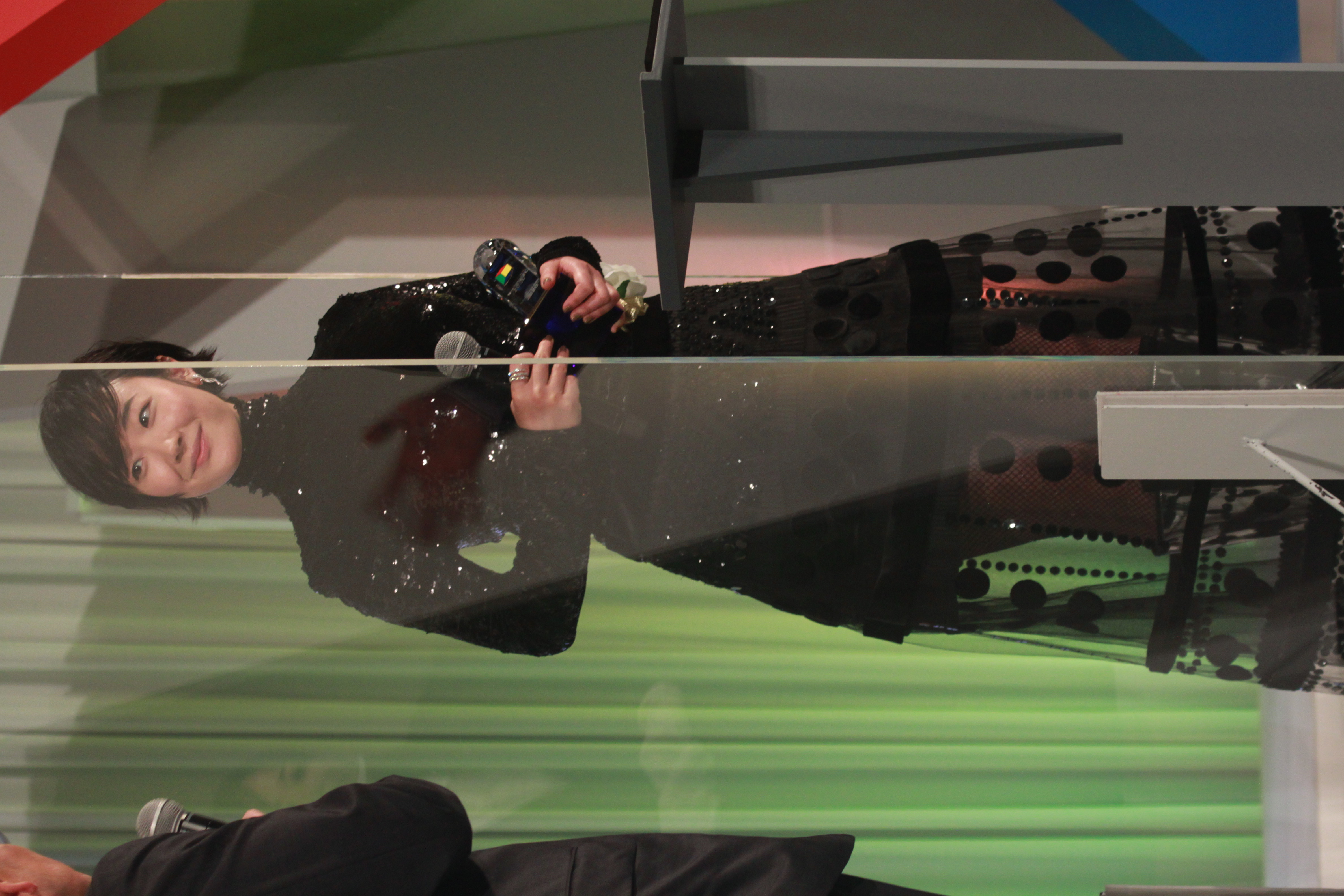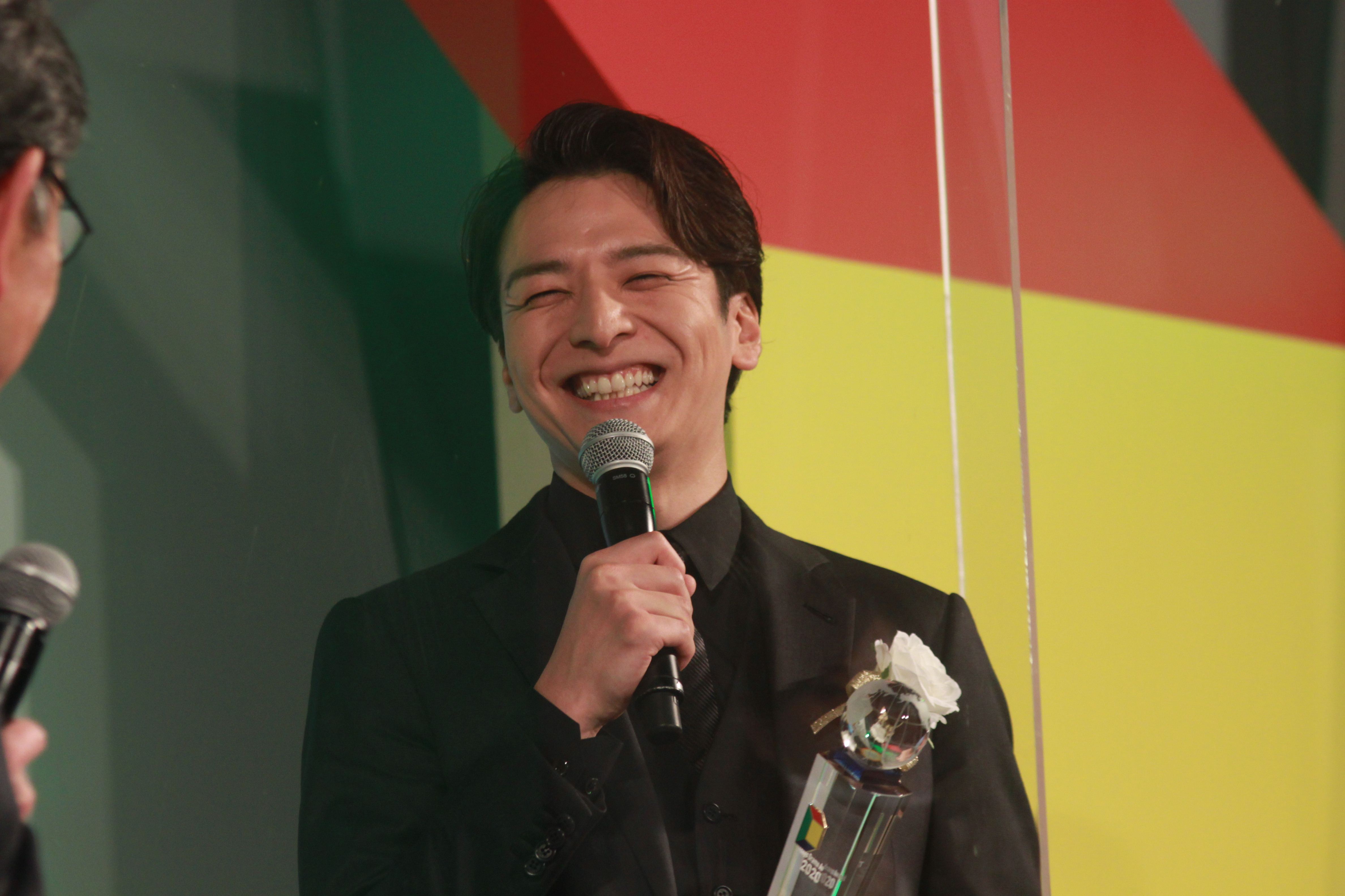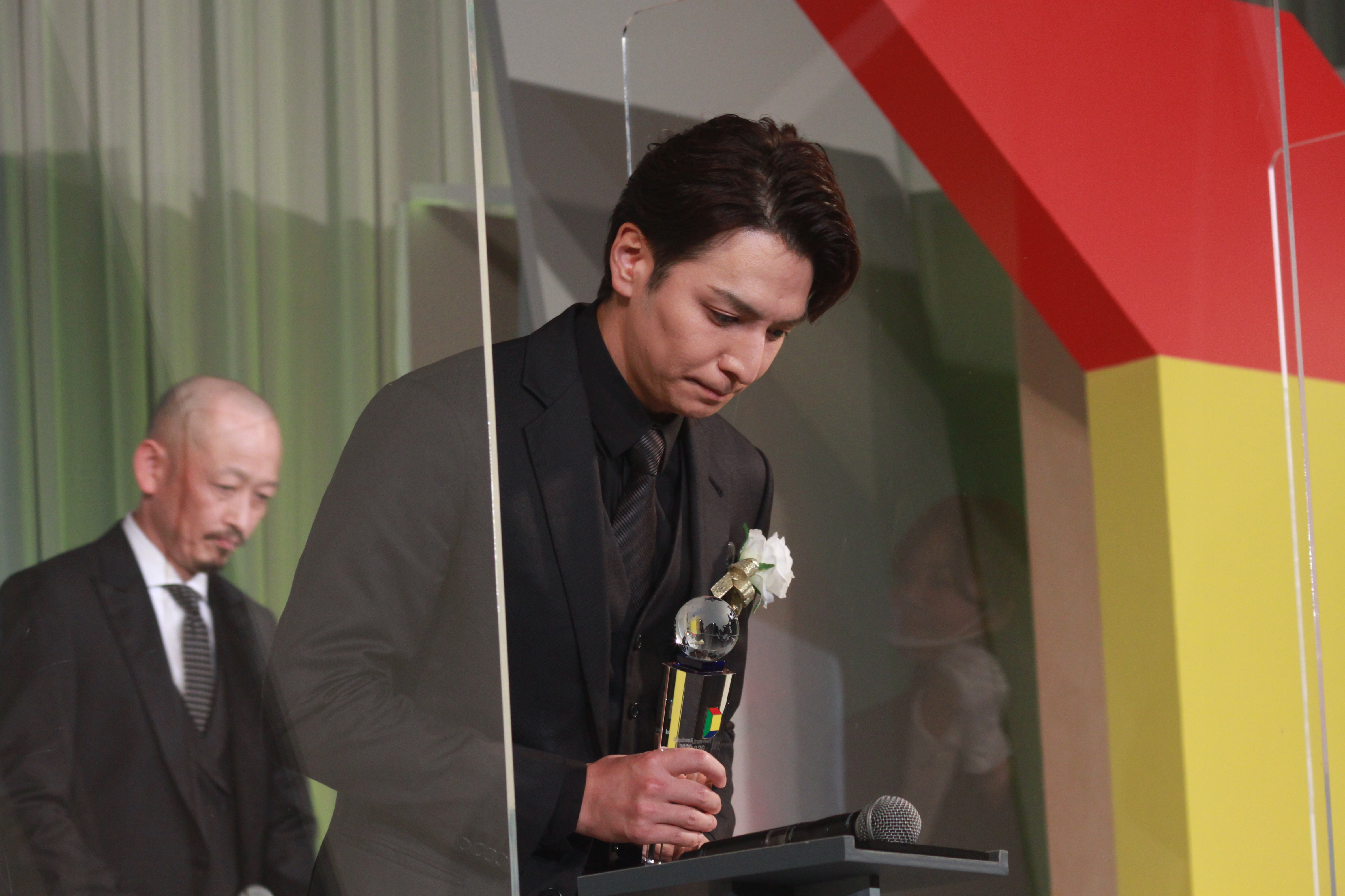 受賞への感謝の言葉と共に、「現場は押しています」の一言で会場を笑わせていました。