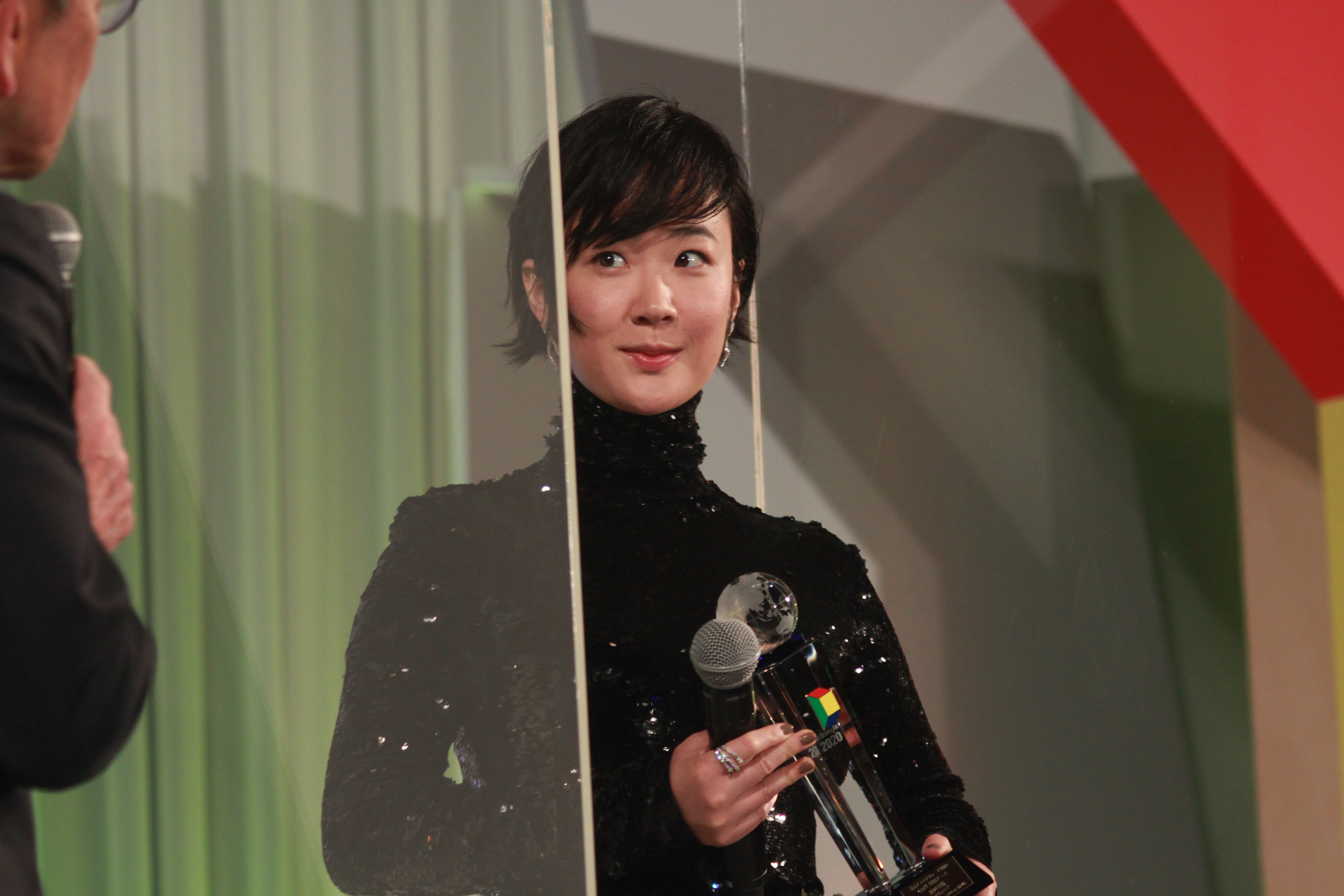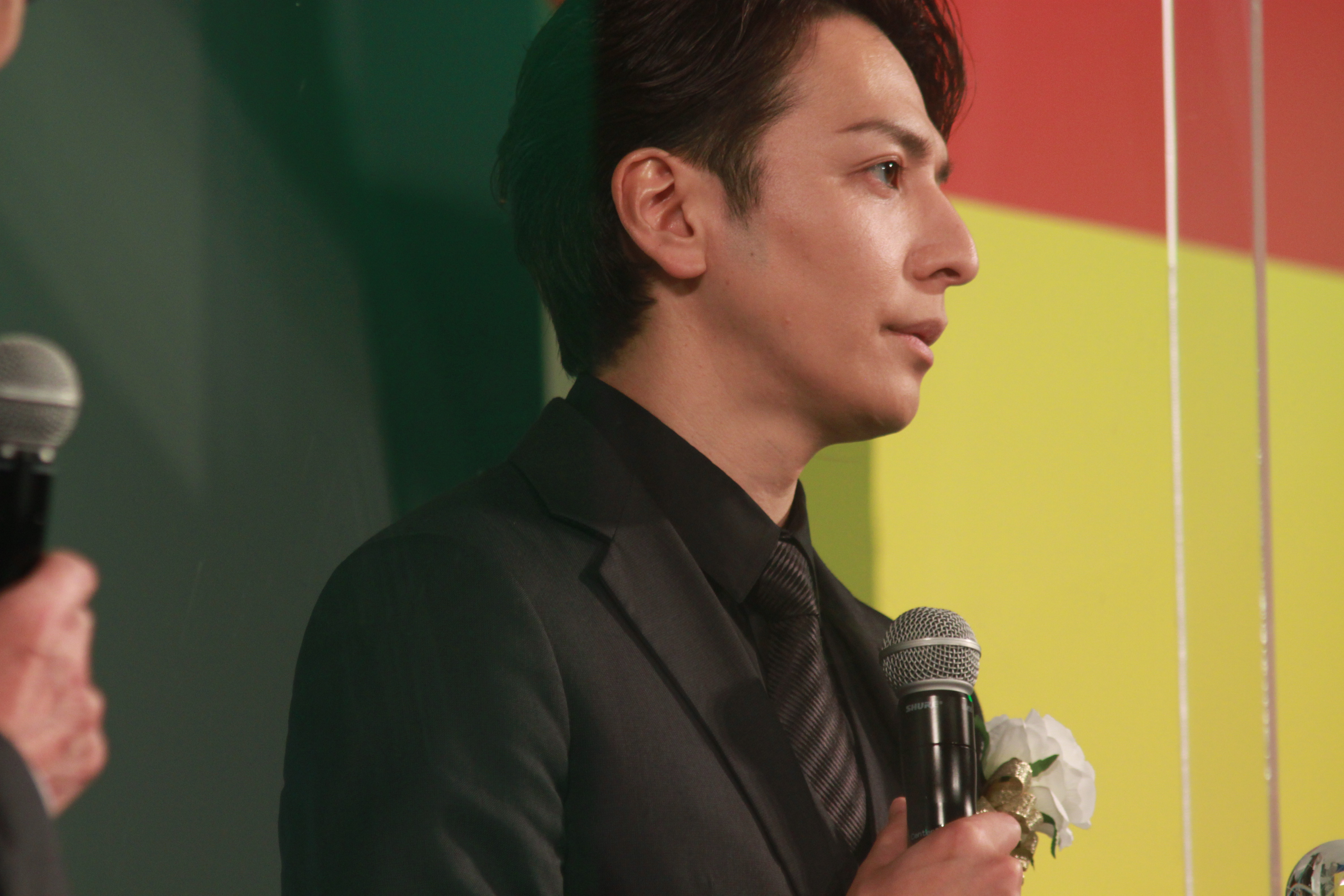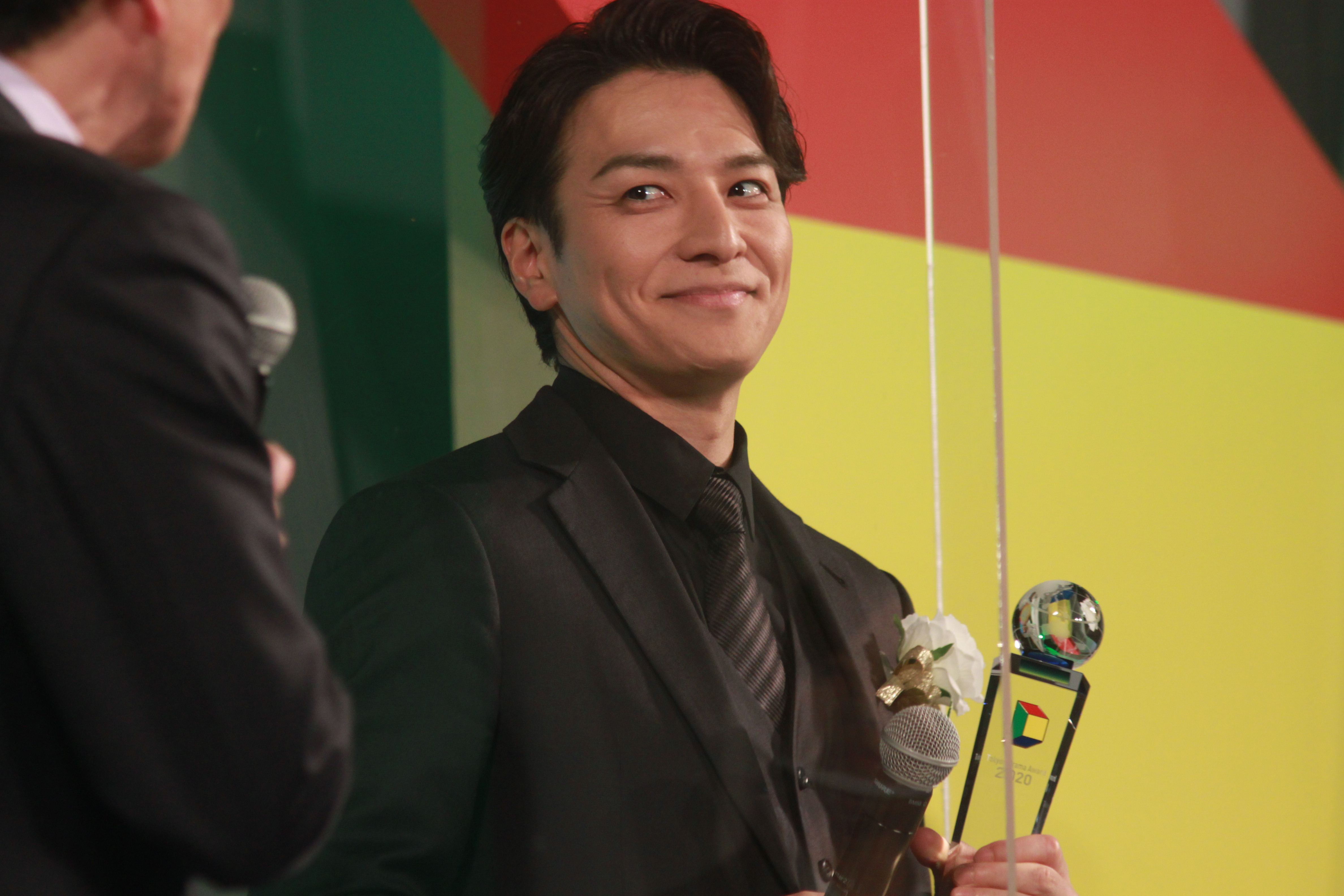 受賞への感謝の言葉と共に、「現場は押しています」の一言で会場を笑わせていました。