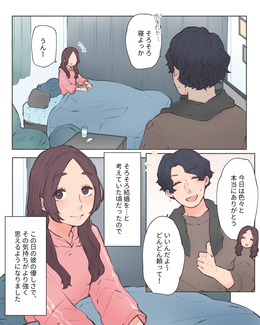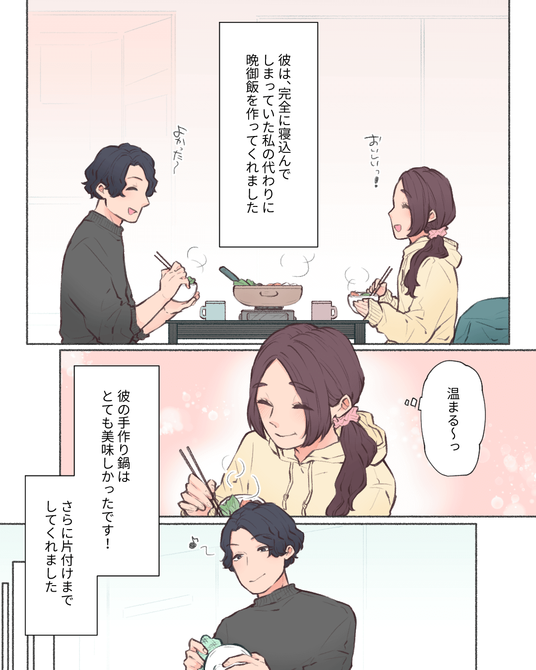 私の素敵な旦那さん候補【Lovely漫画】 オリジナル漫画 2024年10月31日 目次 倖さんの作品をもっと読む! 倖さんの作品一覧【Lovely漫画】 倖さんの人気作をおまとめしています! こちらのLovely漫画もおすすめ! 優しさが染みた一日【Lovely漫画】 熱を出して起き上がれないほどしんどかったある日、突然彼氏が家にやってきた。何やら大きな買い物袋を持ってきて、「ゴハン作るよ」と!普段料理はしないのに、私のために…。©kowari/エピソード:えり 倒れた次の日の彼【Lovely漫画】 付き合って1年の彼。冬のある日、私が倒れたと知った彼がとった行動とは…?©なぁ/エピソード:さくら 最高のサプライズバースデー♡【Lovely漫画】 念願の誕生日デート!プレゼントも貰ってウキウキ♡すると彼の様子が…?©みほ/エピソード:R 気遣いの出来る彼に胸キュン!【Lovely漫画】 学校で生理痛に襲われ、貧血もあり倒れてしまった…。次の授業は何とか出たけれど、また痛みが…(泣)すると、隣に座る彼が私に…。©oomisoka1231/エピソード:ひよこ ライター Lovely編集部 編集部レポや最新情報など皆さんの「知りたい」をお届け!よろしくお願いします♡ Related article / 関連記事 オリジナル漫画 キュンとする恋の思い出【Lovely漫画】 ©beth/エピソード:ルンルン 2022年3月29日 オリジナル漫画 君がいる世界は【Lovely漫画】 付き合ってからずっと言葉で伝えてくれる彼。不満をぶつけて自己嫌悪に陥ったときだって…。©sui/エピソード:まる 2023年12月12日 オリジナル漫画 彼はパパラッチ【Lovely漫画】 カメラ好きの私たちが撮影に行った日、お互いの写真を見てみると…©しのだちかこ/エピソード:まなみ 2023年12月12日 オリジナル漫画 コロナウイルスで会うのを自粛しているカップルの話【Lovely漫画】 ©azusa/エピソード:do!!! 2022年3月29日 オリジナル漫画 やっぱりギャップに弱いんです【Lovely漫画】 普段は「THE男」という感じの彼の照れた顔にキュン♡©しおり/エピソード:ことり 2022年3月29日 オリジナル漫画 キュンとしたはなし【Lovely漫画】 ©ホシノモナカ/エピソード:N 2023年12月12日 オリジナル漫画 ツンデレ…?【Lovely漫画】 ©ホシノモナカ/エピソード:た 2022年3月29日 オリジナル漫画 最高のドライブ【Lovely漫画】 運転してくれる彼の一言に感動していたら…©しおり/エピソード:かっぱ 2024年10月10日 オリジナル漫画 きゅんとした話【Lovely漫画】 ©azusa/エピソード:おもち 2022年3月29日 オリジナル漫画 浴衣サプライズ【Lovely漫画】 年上彼氏と初デート!どんな服を着てくるんだろう…♡©しおり/エピソード:ちょこたん 2023年12月12日 オリジナル漫画 彼のヤキモチ姿を初めて見た時の話【Lovely漫画】 ©azusa 2022年3月29日 オリジナル漫画 二人だけの秘密【Lovely漫画】 好きな人の隣になれた!嬉しいことはそれだけじゃなくて…©つき/エピソード:ひな 2023年12月12日 オリジナル漫画 恋愛感情はなかったはずなのに【Lovely漫画】 仲の良いバイト先の先輩の家で映画を見ることに。お互い恋愛感情はないから友達だよね?!©azusa/エピソード:匿名 2023年12月12日 オリジナル漫画 やっぱり気が合うなと思う瞬間【Lovely漫画】 ©zuki_haruki/エピソード:nui 2022年3月29日 オリジナル漫画 きゅんとした話【Lovely漫画】 ©zuki_haruki/エピソード:miiii 2023年12月12日 オリジナル漫画 お土産と引き換えに…♡【Lovely漫画】 そんな顔が見れるなんて…思い切って好きな人にお願いしてよかったっ!©はる/エピソード:ゆか 2024年2月2日 オリジナル漫画 デキる彼氏【Lovely漫画】 「がんばってね」ではなく「がんばってるね」のメッセージに感動!©倖/エピソード:じゅ 2023年12月12日 オリジナル漫画 胸キュンした話【Lovely漫画】 ©azusa/エピソード:ベル 2022年3月29日 オリジナル漫画 ホワイトデーにもらったプレゼント【Lovely漫画】 今までのホワイトデーで一番嬉しいプレゼントでした♡©おはぎ/エピソード:シエル 2022年3月29日 オリジナル漫画 カレの言葉【Lovely漫画】 どんな姿でも言葉にして褒めてくれる彼が大好き!©kurumi/エピソード:みたらし 2023年12月12日 1 2 オリジナル漫画 よかったらシェアしてね! URLをコピーしました! URLをコピーしました! ヤベェ同期に困ってます!!49【稲漫画】 肌が綺麗になりたい女性必見♡美肌になる25の方法とは?【美容皮膚科監修】