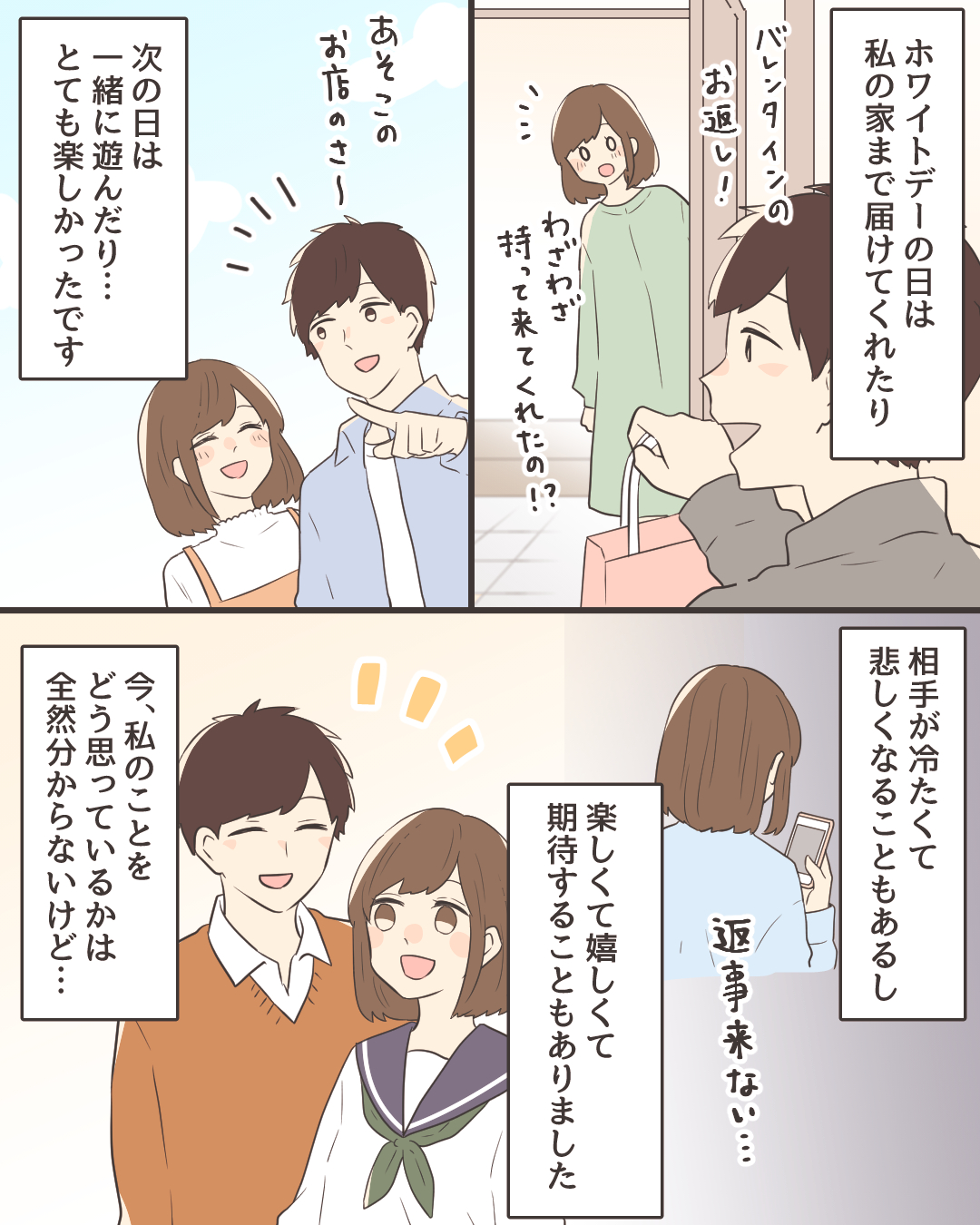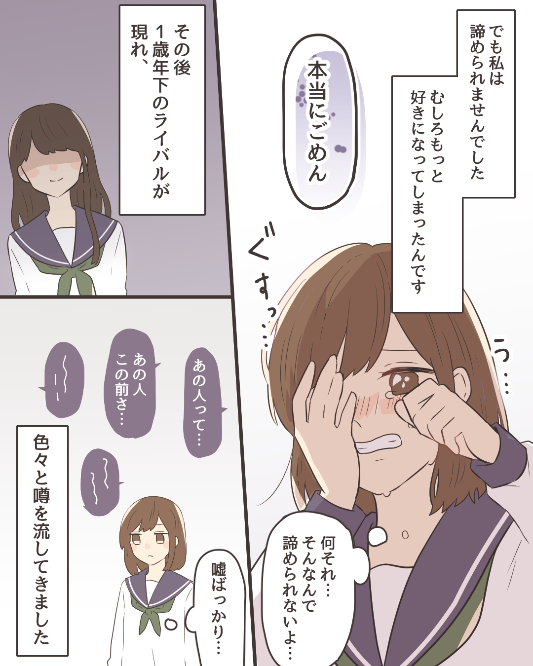 片想い、現在進行形【Lovely漫画】 オリジナル漫画 2024年12月6日 目次 サクライさんの作品をもっと読む! サクライさんの作品一覧【Lovely漫画】 サクライさんの人気作をおまとめしています! こちらのLovely漫画もおすすめ! 1週間の片思い【Lovely漫画】 部活の試合会場で目が離せなかった彼が諦められず…©はる/エピソード:匿名 今でも忘れられない人【Lovely漫画】 中3の頃に付き合っていた彼氏と久々に再会して…©なぁ/エピソード:n 好きな人に好きな人がいる?告白成功の11の秘訣!【必見】 好きな人に好きな人がいると分かった場合、とてもショックで辛い思いをしなければなりません。 諦めて次の恋を探す前に「当たって砕けろ」で思い切って告白してみませんか? 今回は好きな人に好きな人がいる場合の告白成功の秘訣についてまとめてみました。 好きな人を忘れられない人必見!記憶から消すことが最良だとは限らない 恋に破れても好きな人を忘れられないときの気持ちとの向き合い方を紹介します。苦しみから逃れようとして記憶から相手を消してもあなたの気持ちは募るばかりです。消したから心の整理がつくというものではありません。自分自身と正面から向き合って最良の決断をしましょう! ライター Lovely編集部 編集部レポや最新情報など皆さんの「知りたい」をお届け!よろしくお願いします♡ Related article / 関連記事 オリジナル漫画 忘れられない恋【Lovely漫画】 中学・高校と一緒だった彼に6年間片思いしていた私。告白できないまま卒業の日がやってきて…。©beth/エピソード:すーちゃん 2025年2月6日 オリジナル漫画 君にとらわれ続ける。【Lovely漫画】 勇気があれば何か変わったかな…©suiさんオリジナルストーリー♡ 2023年12月12日 オリジナル漫画 すれ違ってしまった初彼が忘れられなくて…【Lovely漫画】 「私を幸せにしてくれてありがとう。君も幸せになってね」©しのだちかこ/エピソード:ブタゴリラ 2024年10月25日 オリジナル漫画 恋人と別れる【Lovely漫画】 ©azusa/エピソード:ダグ 2022年3月29日 オリジナル漫画 最高で最悪のプレゼントを君に。【Lovely漫画】 幼馴染だからこそ近くて遠い…想いがすれ違ってしまったお話©sui 2023年11月15日 オリジナル漫画 両片思い(?)【Lovely漫画】 高校時代に好きだったYくん。お互い意識しつつも何もなく卒業しました。しかし卒業後、Yくんが共通の友達と遊びに来てくれて…。… 2024年9月19日 オリジナル漫画 1週間の片思い【Lovely漫画】 部活の試合会場で目が離せなかった彼が諦められず…©はる/エピソード:匿名 2024年10月28日 オリジナル漫画 卒業まで待っててください【Lovely漫画】 私は学校の先生に恋をしました。©マナミン/エピソード:匿名 2022年3月29日 オリジナル漫画 謝り足りない「ごめんね」【Lovely漫画】 自分から手放したのに…忘れられないあの人©しのだちかこ/エピソード:にお 2024年12月3日 オリジナル漫画 彼の初恋の人【Lovely漫画】 ©azusa/エピソード:こぶたちゃん 2022年3月29日 オリジナル漫画 結婚破談した話【Lovely漫画】 ©azusa/エピソード:まあちゃん 2023年12月12日 オリジナル漫画 忘れられない思い出【Lovely漫画】 ©azusa/エピソード:@kadowaki_hiro 2022年3月29日 オリジナル漫画 ノンセクシュアルだと気付いた話【Lovely漫画】 ©azusa/エピソード:なつき 2022年3月29日 オリジナル漫画 今でも忘れられない人【Lovely漫画】 中3の頃に付き合っていた彼氏と久々に再会して…©なぁ/エピソード:n 2024年5月21日 切ない 伝えられない片想い【Lovely漫画】 気付いた時には遅くて、でもどうしようもないこの気持ち…©おはぎ/エピソード:ひまわり 2022年3月29日 切ない この恋、続けます【Lovely漫画】 嫌われてるかも…でも私は好き!©倖/エピソード:お砂糖。 2024年9月6日 恋愛漫画 その笑顔以外欲しくない。【Lovely漫画】 中学二年生から大学生になった今でも忘れられない彼女への想い…©倖/エピソード:えにまるくん 2024年8月1日 オリジナル漫画 私の激重カレシ【Lovely漫画】 「彼氏と長続きしない」と悩んでたけど、彼ならきっと…©高槻陽/エピソード:サリ丸 2024年9月20日 オリジナル漫画 恋愛より部活動を優先したあのとき【Lovely漫画】 スポーツ推薦で入学し、恋愛より部活動を優先した高校時代の思い出©倖/エピソード:ナナ 2024年11月29日 オリジナル漫画 自分を成長させてくれた人【Lovely漫画】 就職で上京し友達の居なかった頃、SNSで知り合ったある男性。次第に彼に惹かれ、あいまいな関係に。しかしある日彼から留学に行… 2024年8月14日 1 2 3 4 オリジナル漫画 よかったらシェアしてね! URLをコピーしました! URLをコピーしました! 私への扱いだけ雑なママ友13【稲漫画】 神奈川のデートスポット31選!おすすめから穴場まで完全網羅!